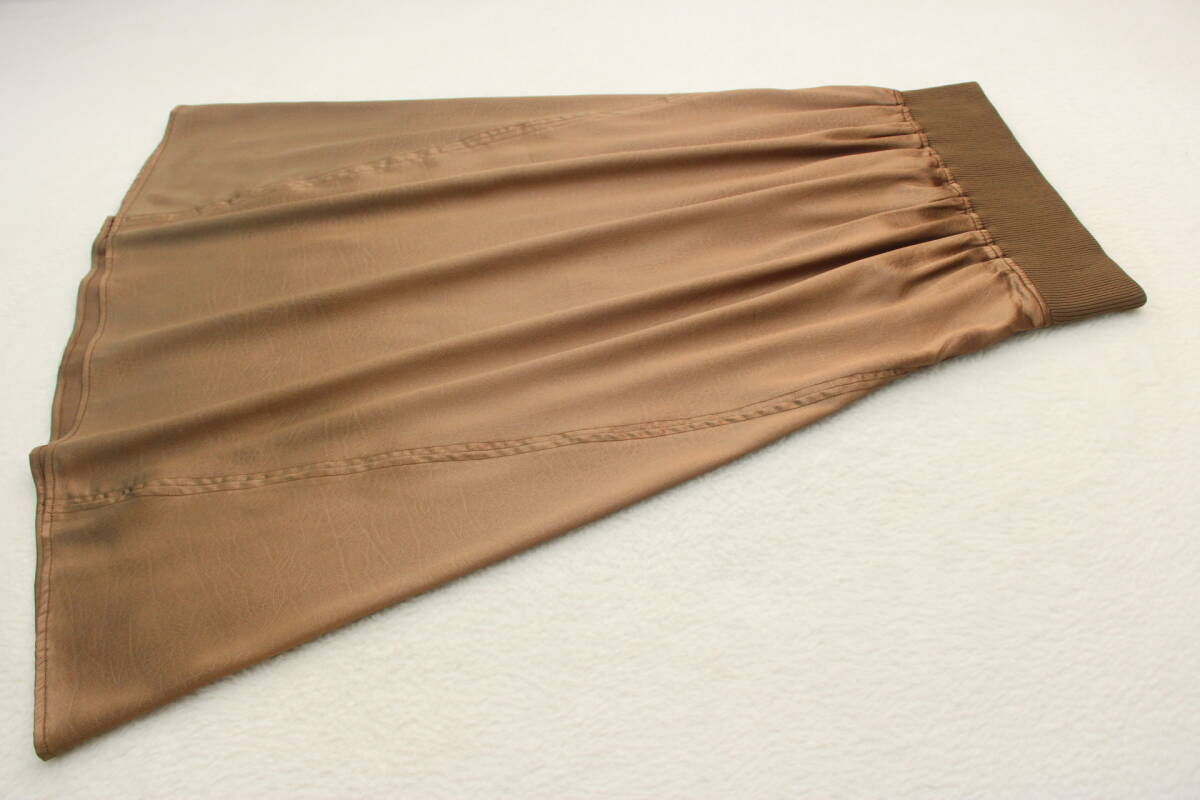 5570 新品 ウエストゴム光沢スカート ブラウンFサイズ