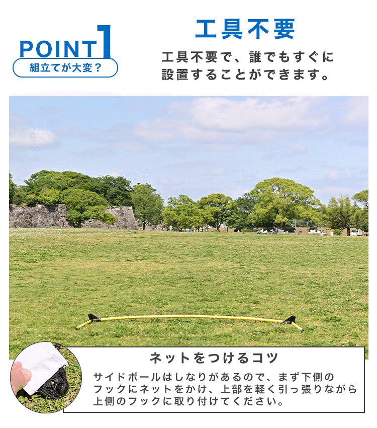 パーツの数も少なく、ポール同士が連結で組立ても超カンタン♪