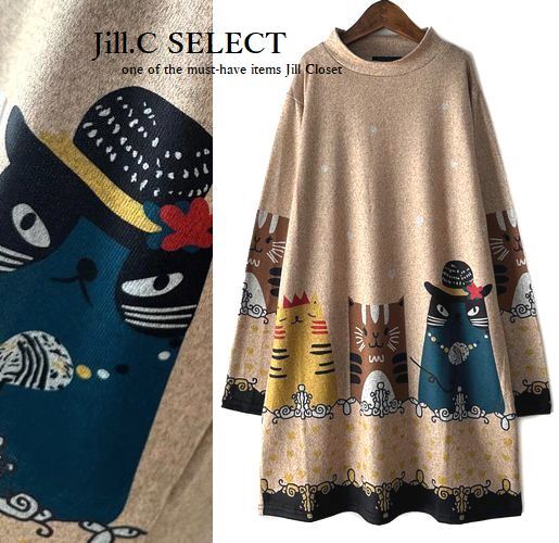 Product name: 新品【送料185円】伸縮◎遊び心溢れる 可愛らしい猫ちゃんpt*ニットソーストレッチ素材*プルオーバー*チュニック7710.BEIGE