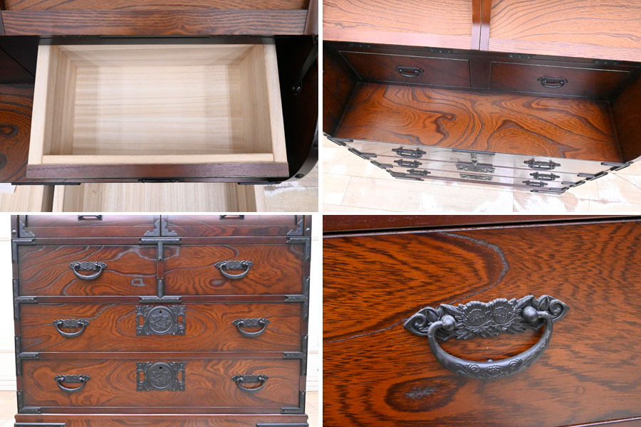 Product name: H155M 美品 日本製 西日本立川木工 曲線美 極上木目 欅 けやき 時代箪笥 桐 からくり箪笥 チェスト 衣装箪笥 アリ組 引出箪笥 整理タンス