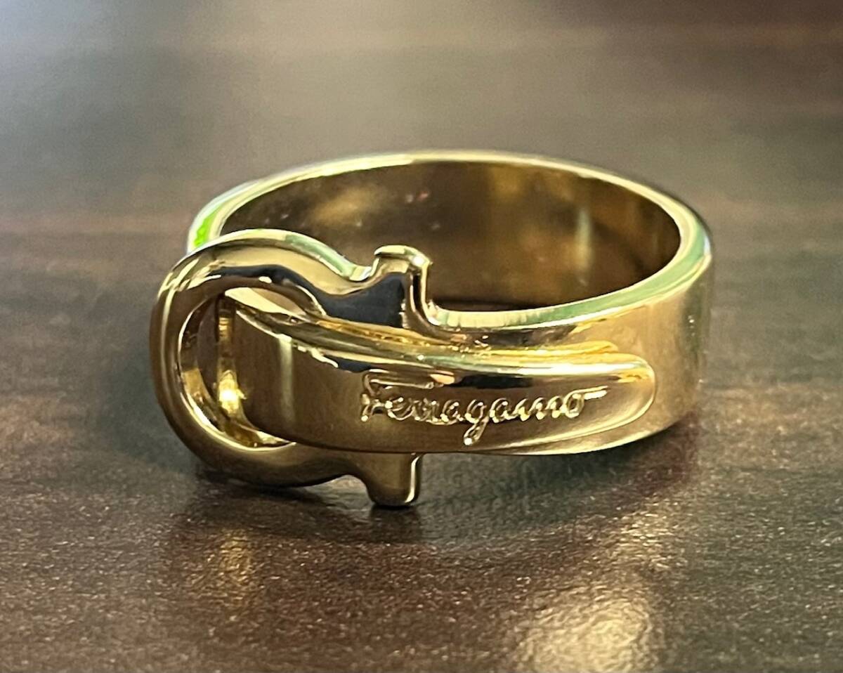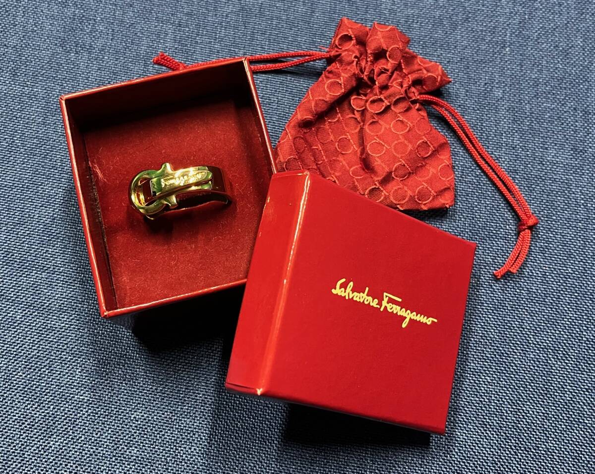 【Salvatore Ferragamo サルヴァトーレフェラガモ】 箱付き 巾着付き スカーフリング ガンチーニ ベルトモチーフ