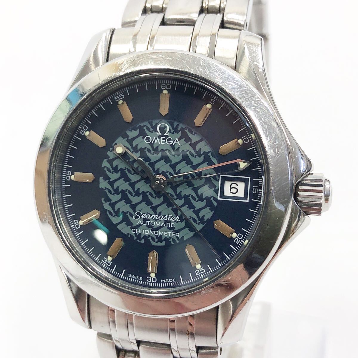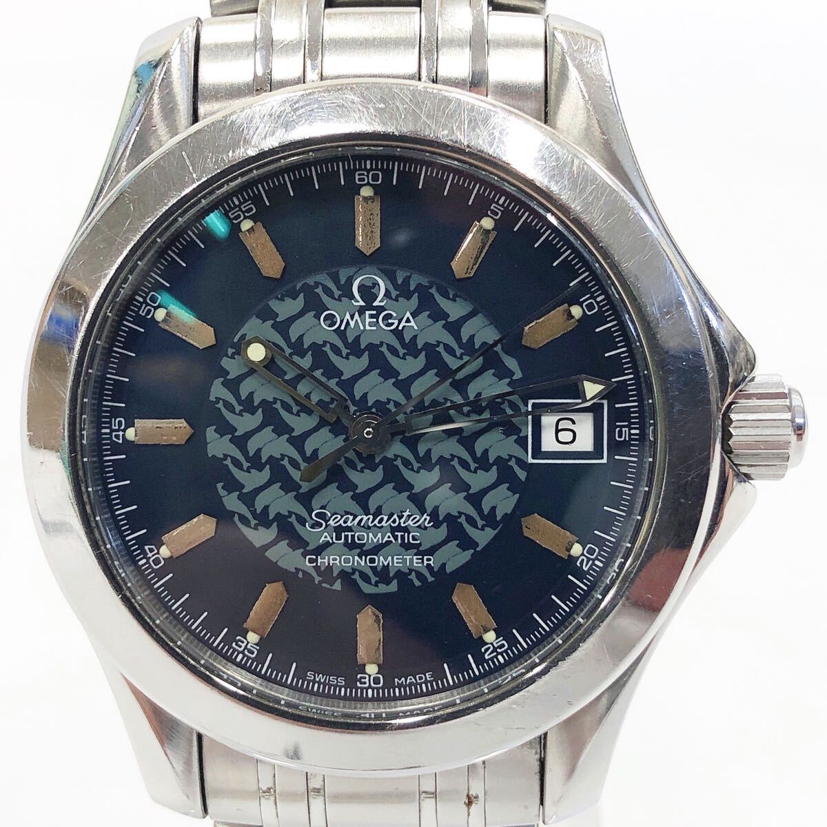 ★4-1002 動作品 OMEGA Seamaster CHRONOMETER オメガ シーマスター AT Cal.1109 Ref.168.1611 青文字盤 稼働品 3コマ付属 追加写真有り