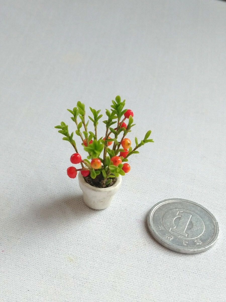 *mame* ミニチュア クランベリー 鉢植え 苔桃 アンティーク鉢 ドールハウス リーメント miniature flower cranberry
