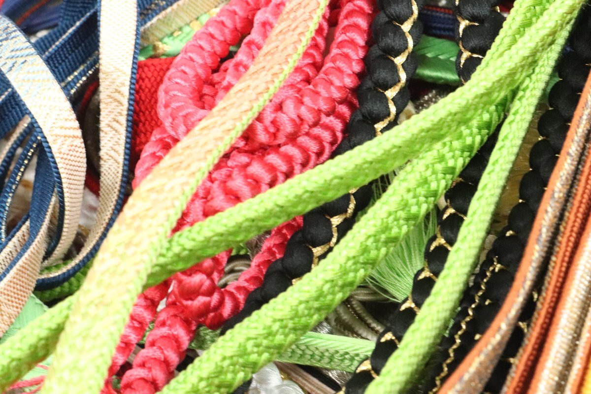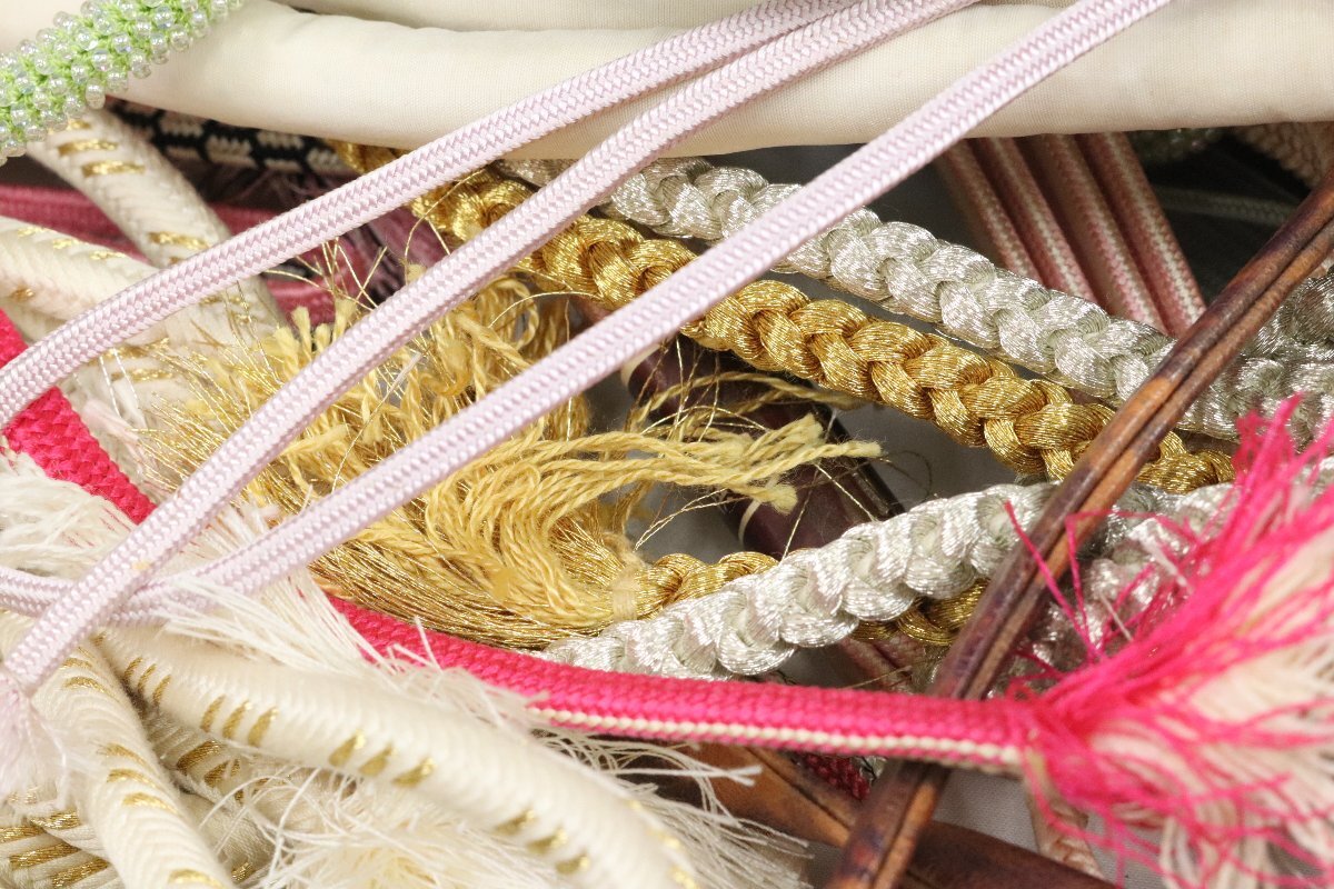 化繊や交織のものもあるかもしれませんが、ほとんどが正絹の帯締めです。