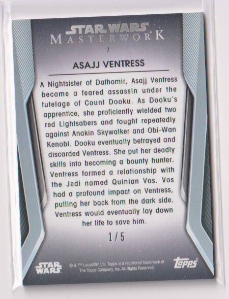 Product name: Topps Star Wars Master Work Asajj Ventress 5枚限定 #1/5
