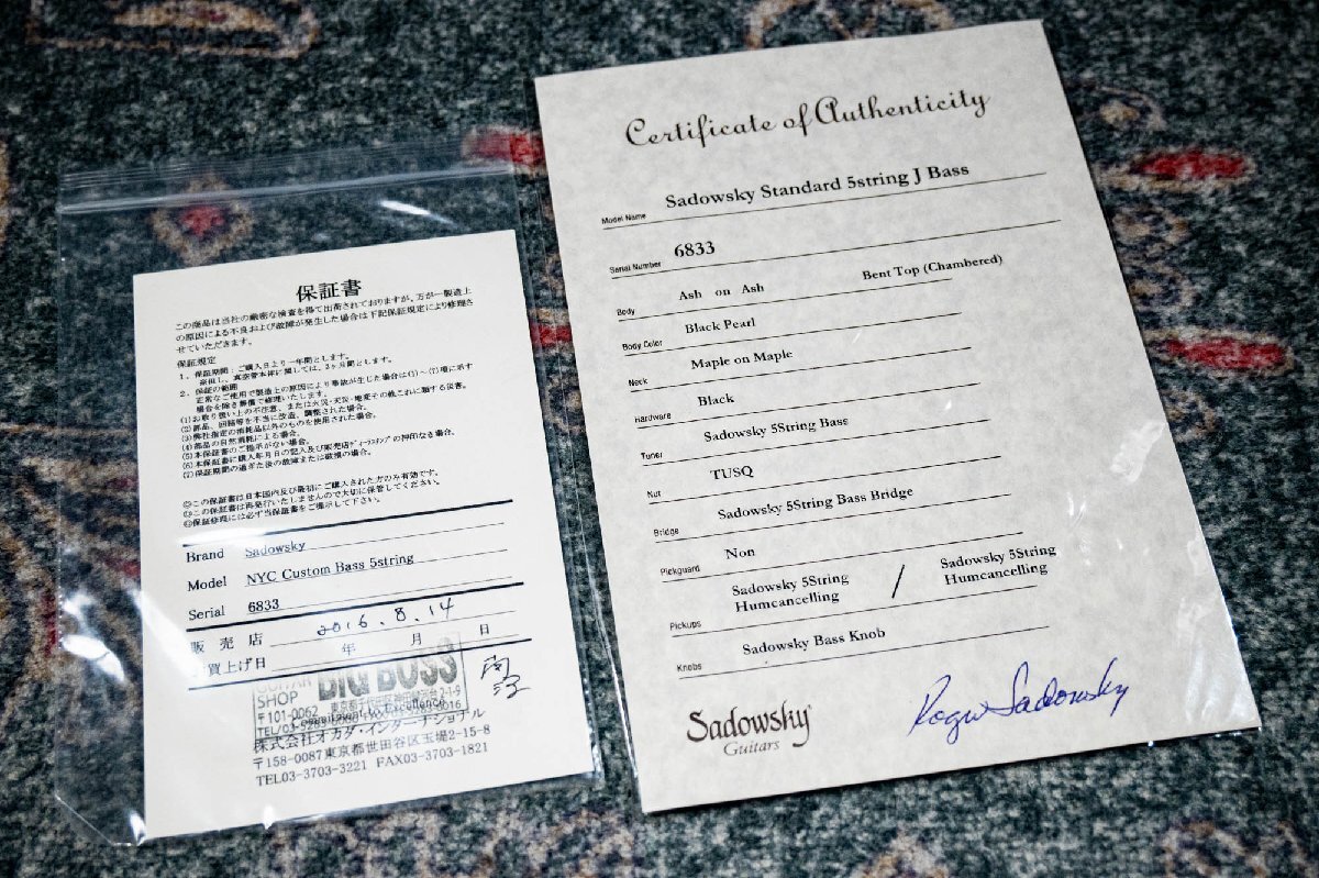 Product name: Sadowsky NYC Custom Standard 5string J Bass サドウスキー カスタム スタンダード エレクトリックベース 3135225 D1026