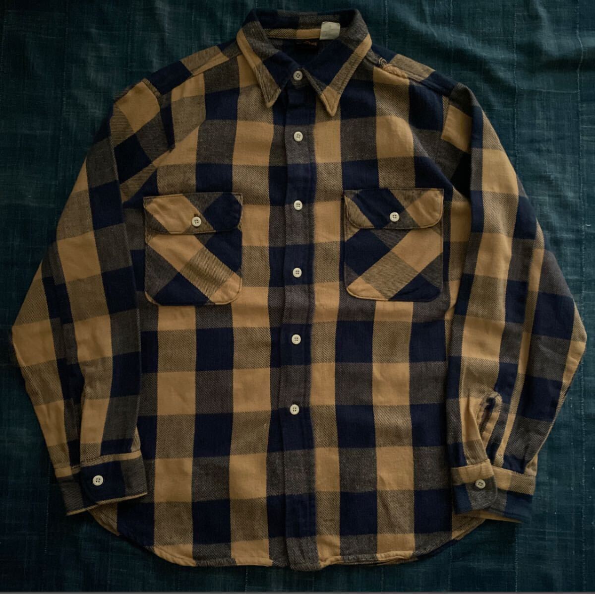 Rare 60s 70s Big Yank 青ベース 白ボタン ネルシャツ の出品になります。ヴィンテージがお好きな方でしたら馴染みのあるBig Yankのタグが付く一枚。青に黄色のブロックチェックパターンと配色も抜群です。ディティールもオール白ボタンに裏ボーダーとポイントもしっかり押さえております。古い年代のネルシャツにはなりますがしっかり身幅もあり、対して着丈は収まりの良いサイズ感。理想のヴィンテージネルシャツのシルエットです。オープンカラーのボックスシルエットが好みという方にもおすすめの丈感です。非常に希少なBig Yankの青、黄ベースの一枚。是非この機会に御検討下さい。