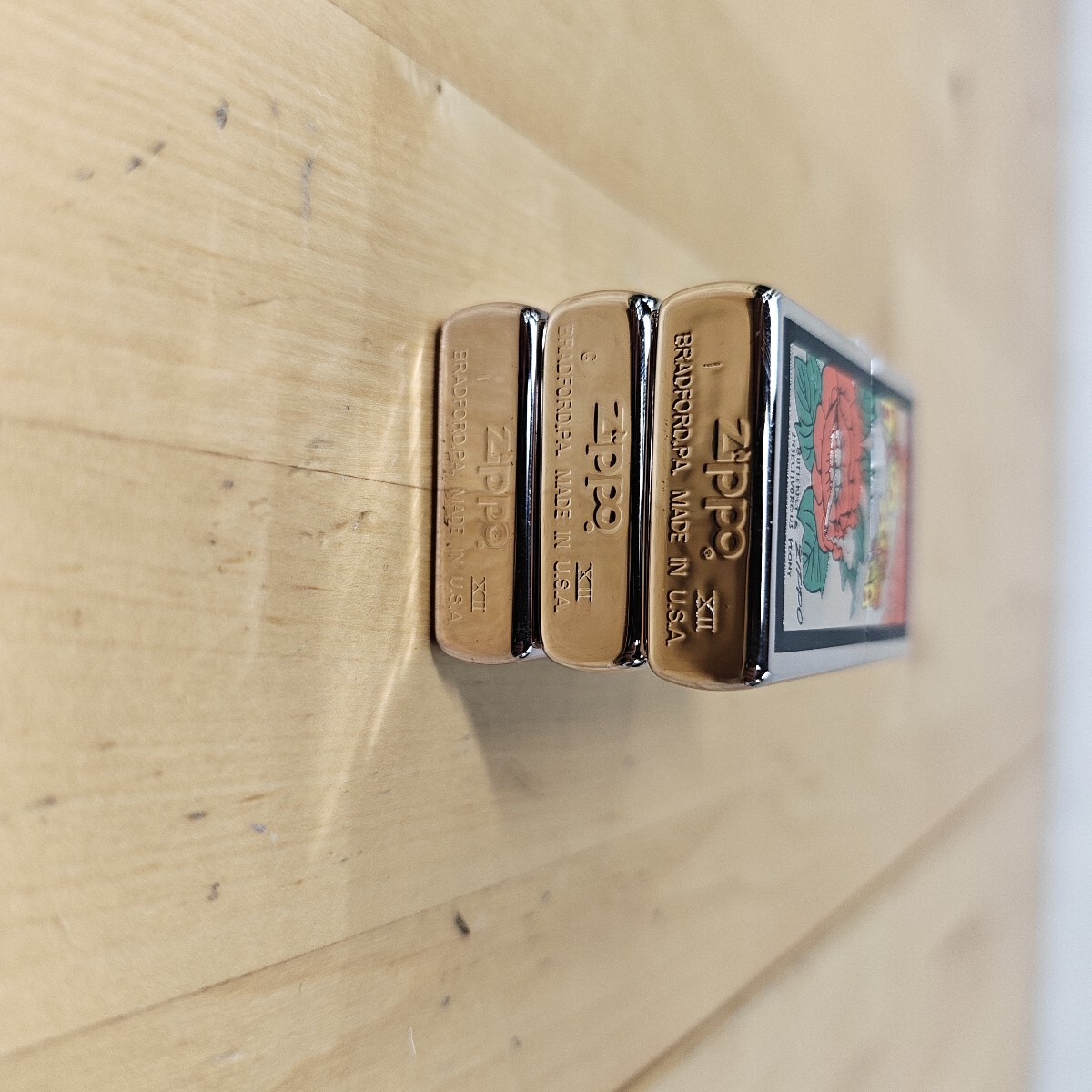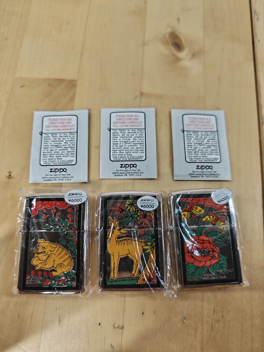 10Y48 96年製!猪鹿蝶セット! zippo ジッポ 花札 トリックアート 猪 鹿 牡丹 XII I I G