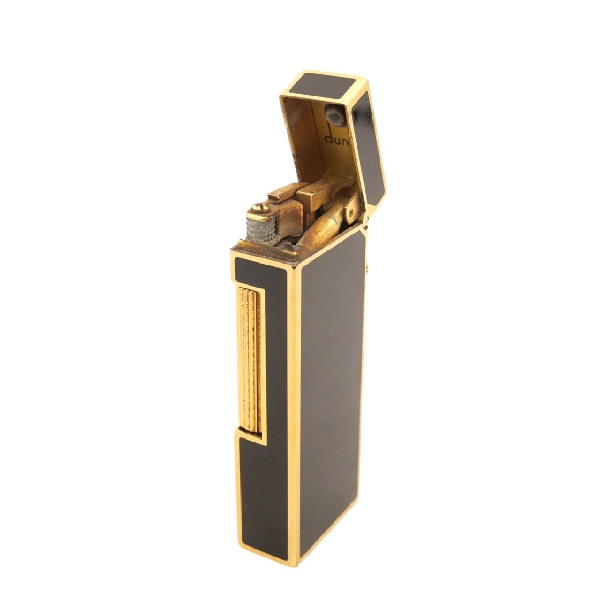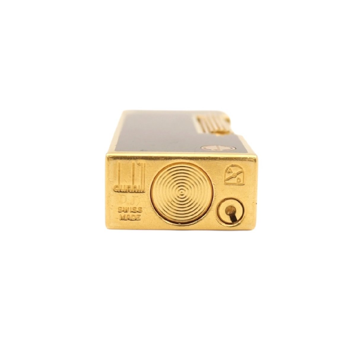 1円スタート Dunhill ダンヒル ローラー式 ガスライター スクエア ブラック ゴールド カラー スイス製 煙草グッズ ケース付き 着火未確認
