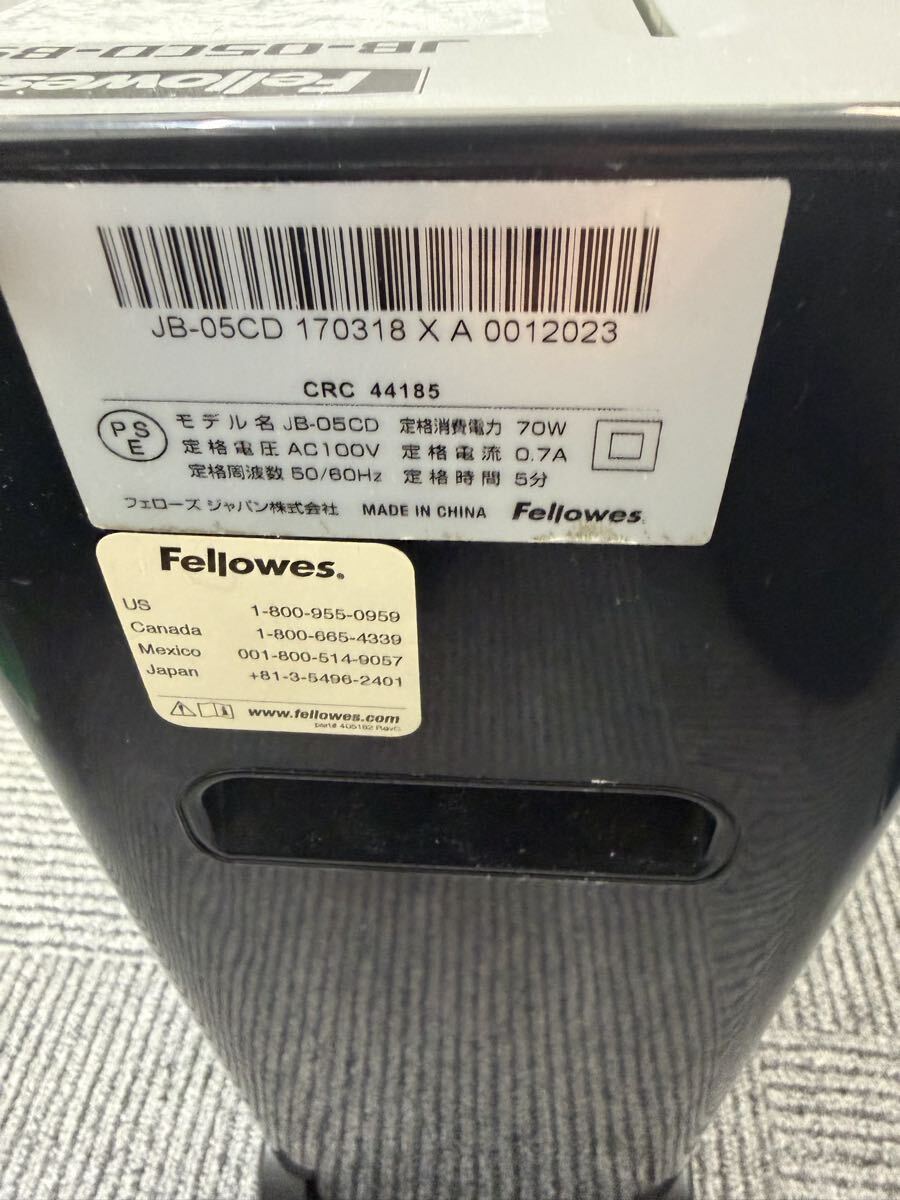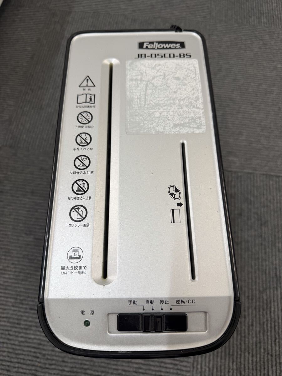 ◎Fellowes フェローズ シュレッダー JB-05CD-BS 動作品 クロスカット 最大5枚対応 CD/DVD対応 70W 現状品