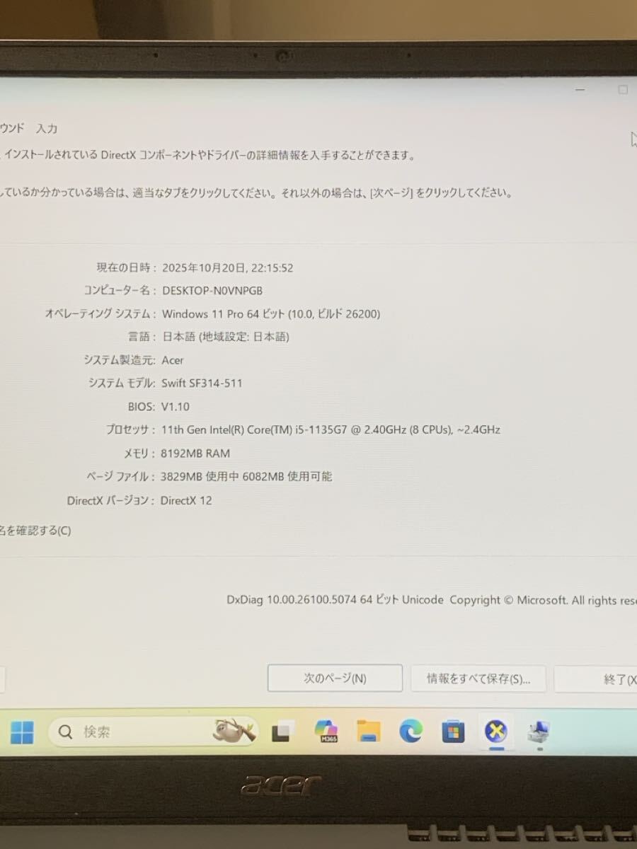Acer Swift SF314 i5-1135G7 8GB SSD512GB Full HD 14インチ バッテリー1時間 no.1