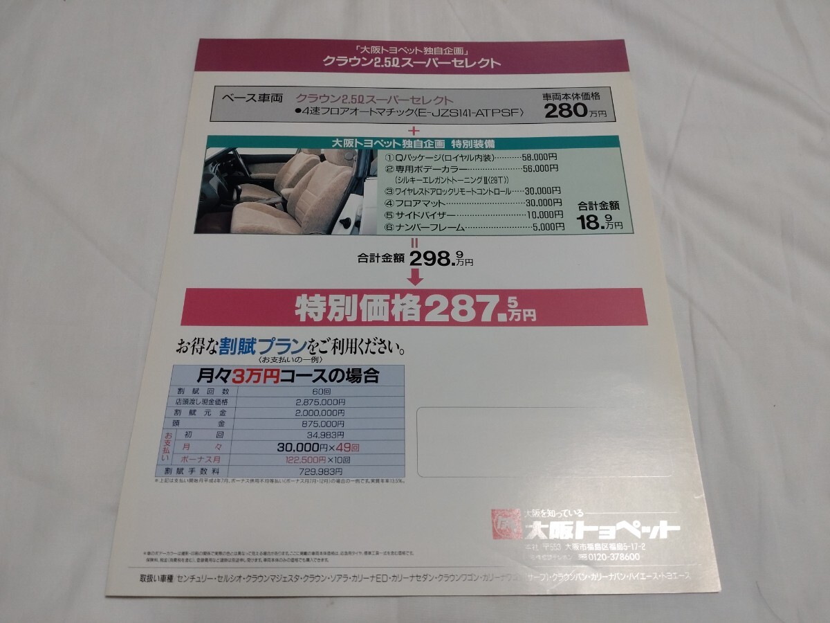 Product name: 美品 トヨタ クラウン 大阪トヨペット独自企画車 カタログセット JZS141 系
