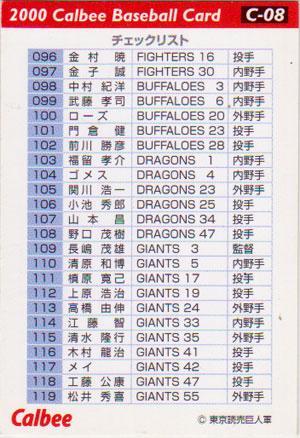 ★トレカ★2000年カルビー★チェックリスト【#C08 上原浩治 巨人】★