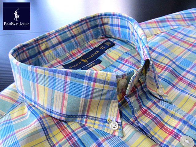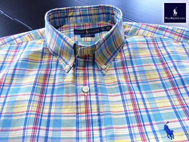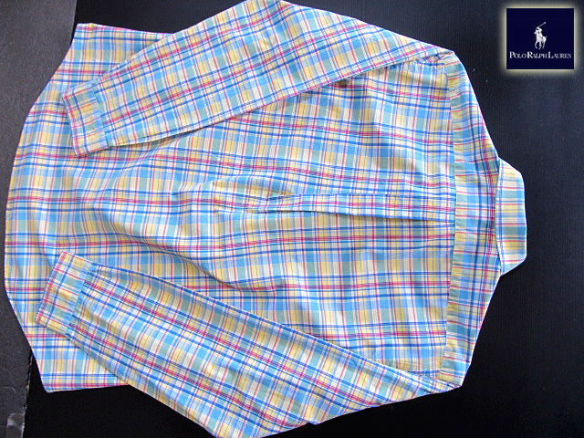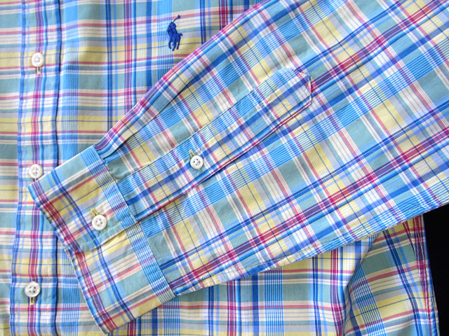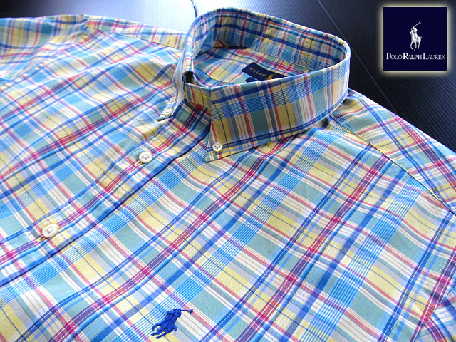★500円スタート!ラルフローレン RALPH LAUREN ボタンダウンシャツ 長袖 Lサイズ 希少品 ハンサムチェック イエロー×ブルー×レッド