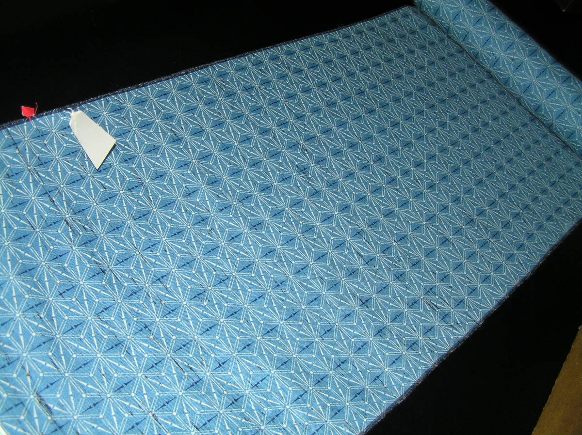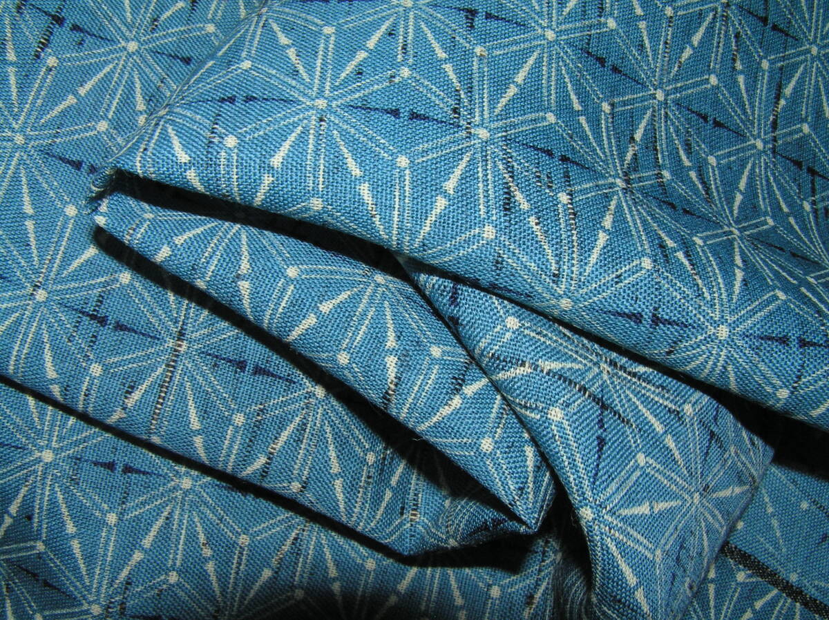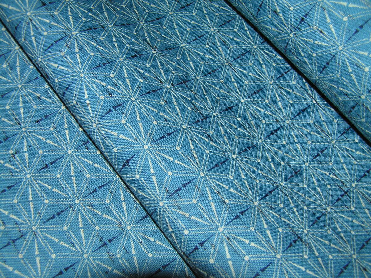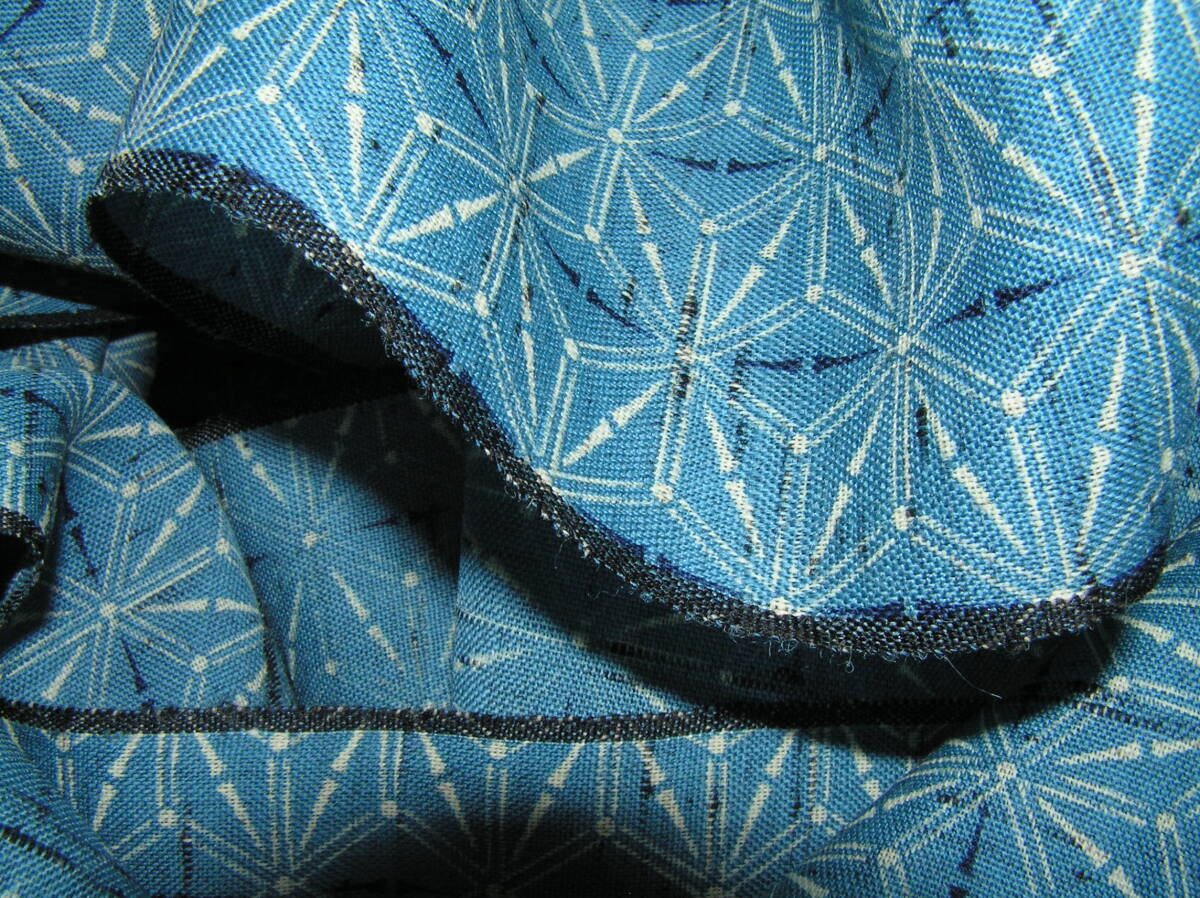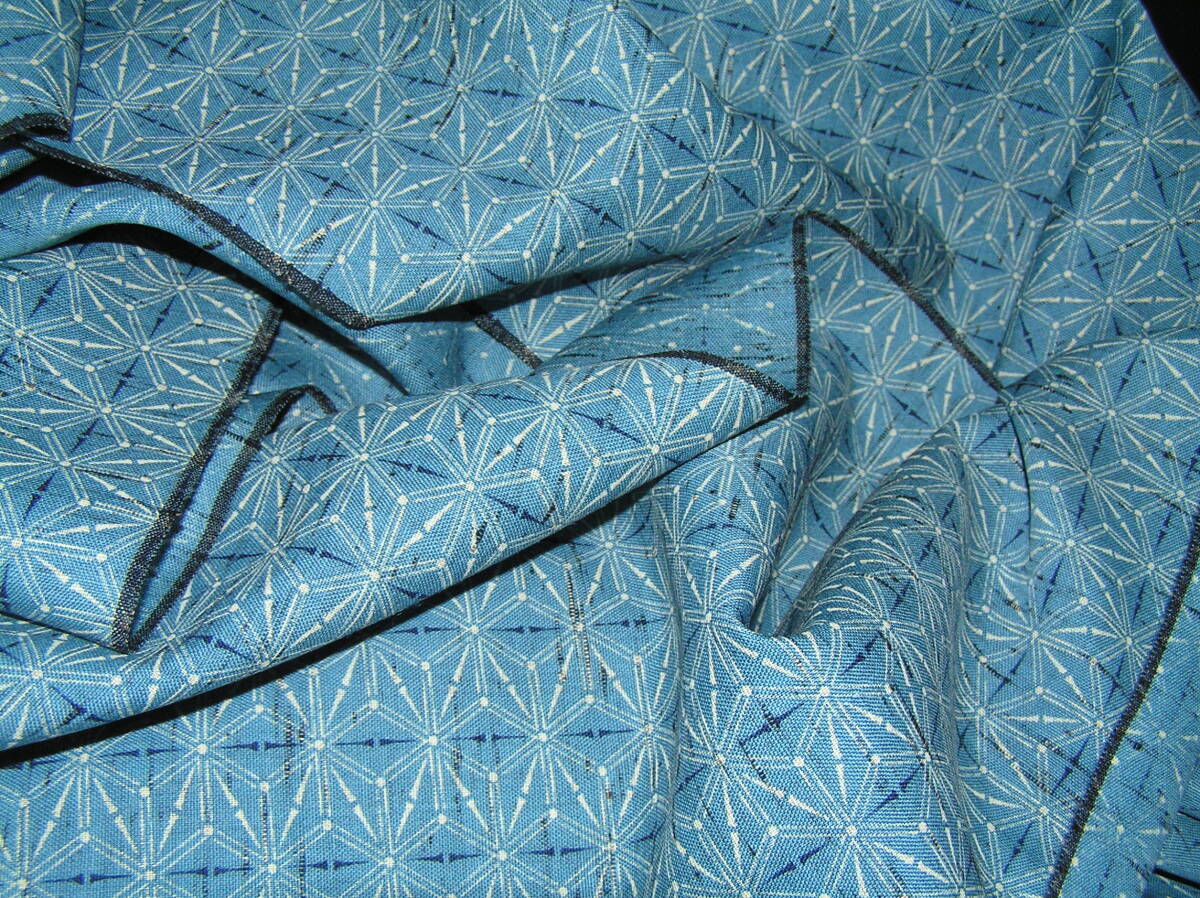 やや深めのブルーを基調に紺と白で麻の葉を染めた薄手でしなやかな上質の生地です