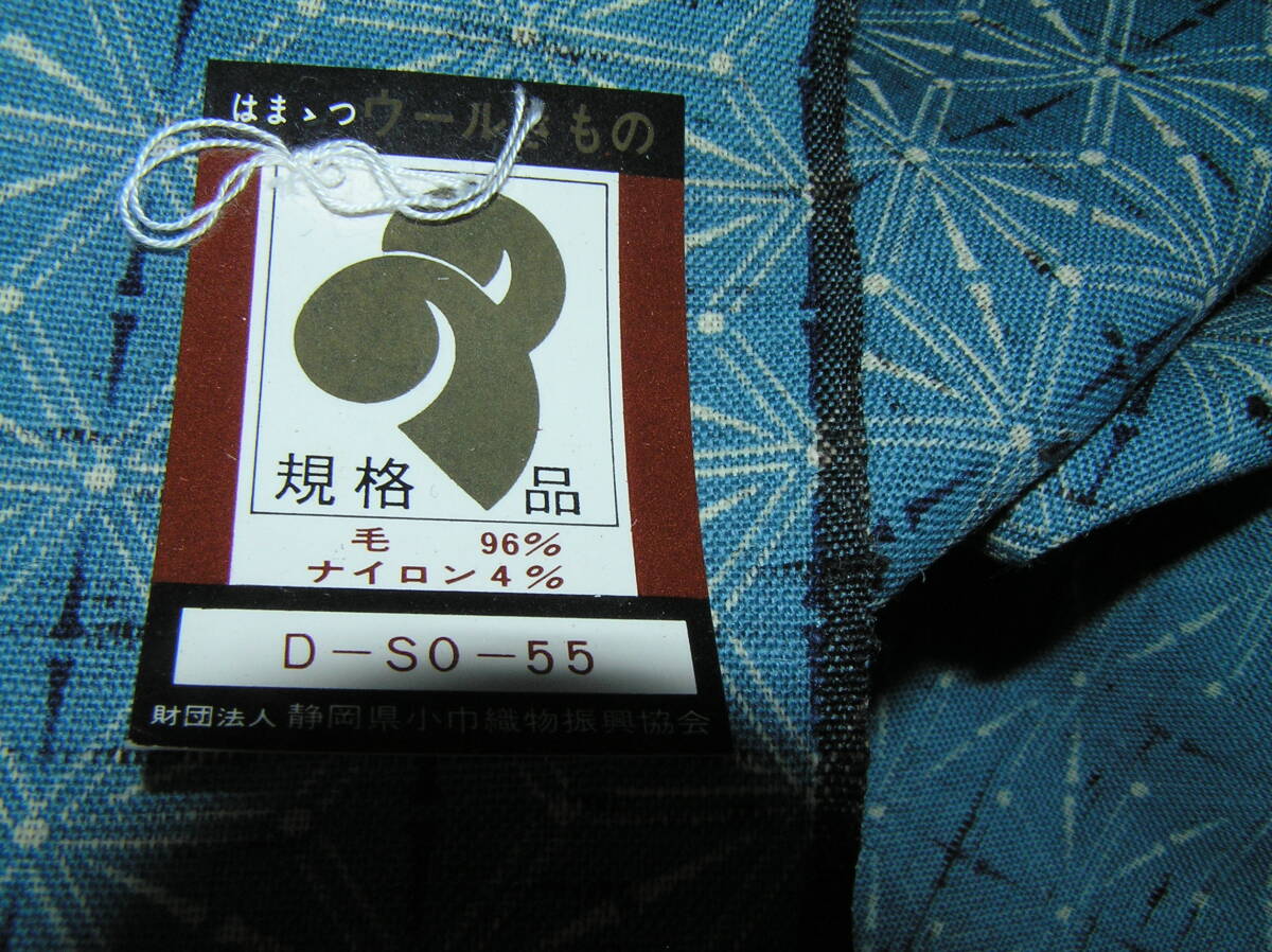 Product name: どんぶらこ★反物★絣調のオシャレな浜松のウール★ブルー系の麻の葉★未使用