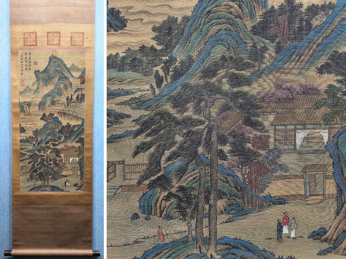 Product name: 【安】中国東晋時代画家「顧愷之書」絹本「山水人家図」掛軸 中国画 墨寶妙品 中国書道 古美術 424