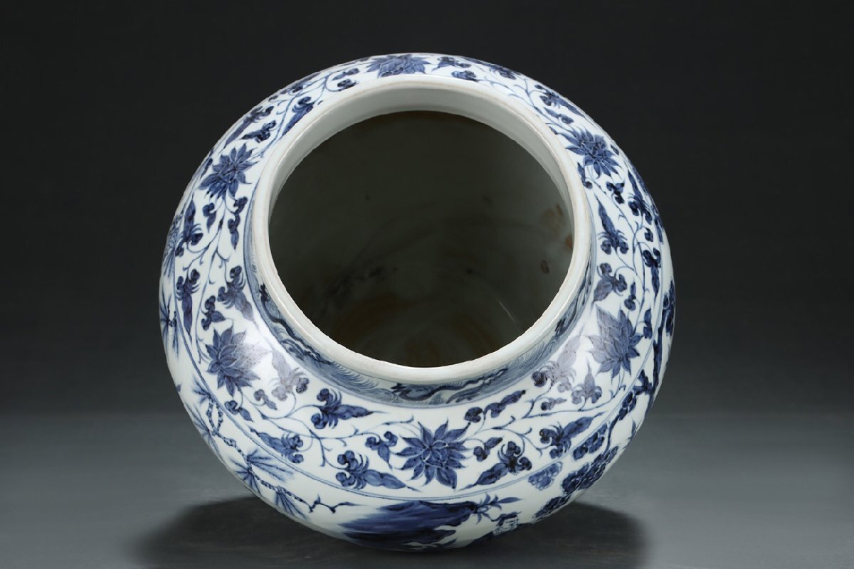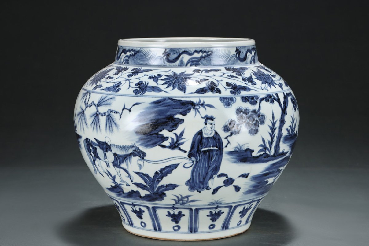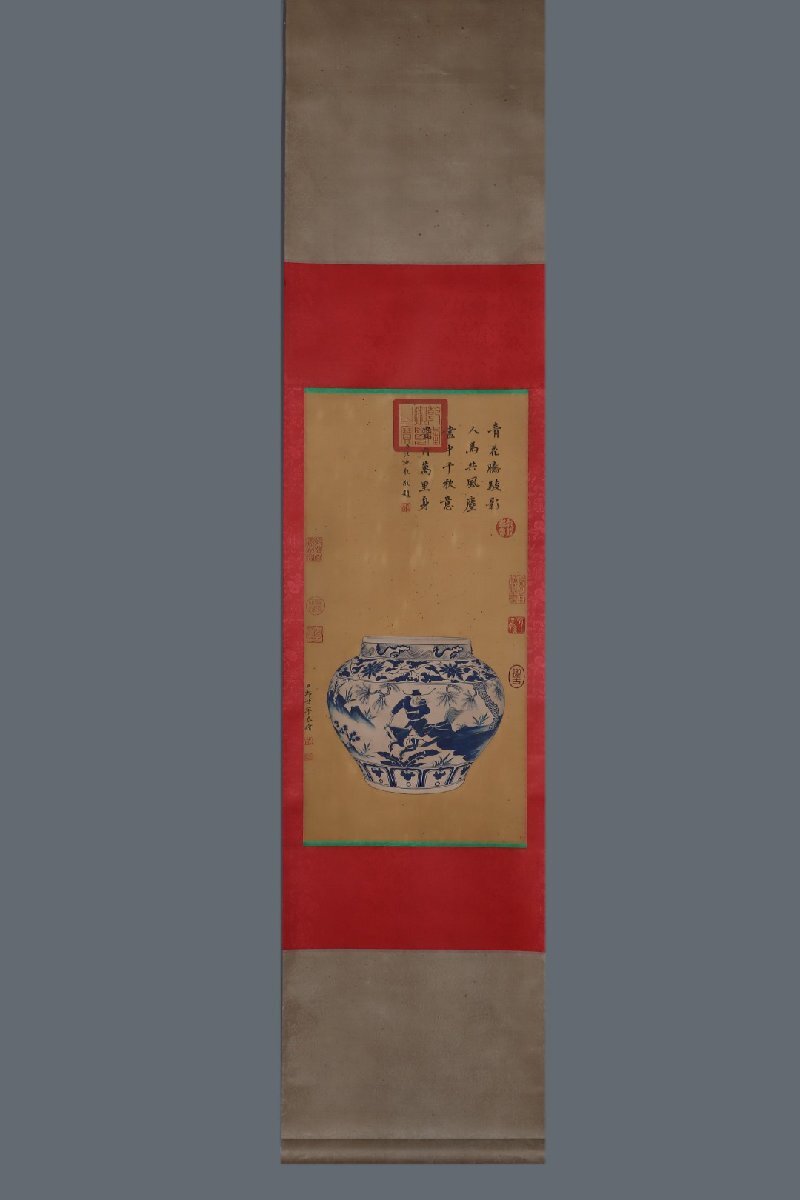 Product name: 【安】元時代 青花纏枝花卉人物故事紋罐 郎世寧絵 絹本【磁器瓶図】掛け軸 共箱 唐瓷 染付 古陶瓷 中国古美術 古董品 346