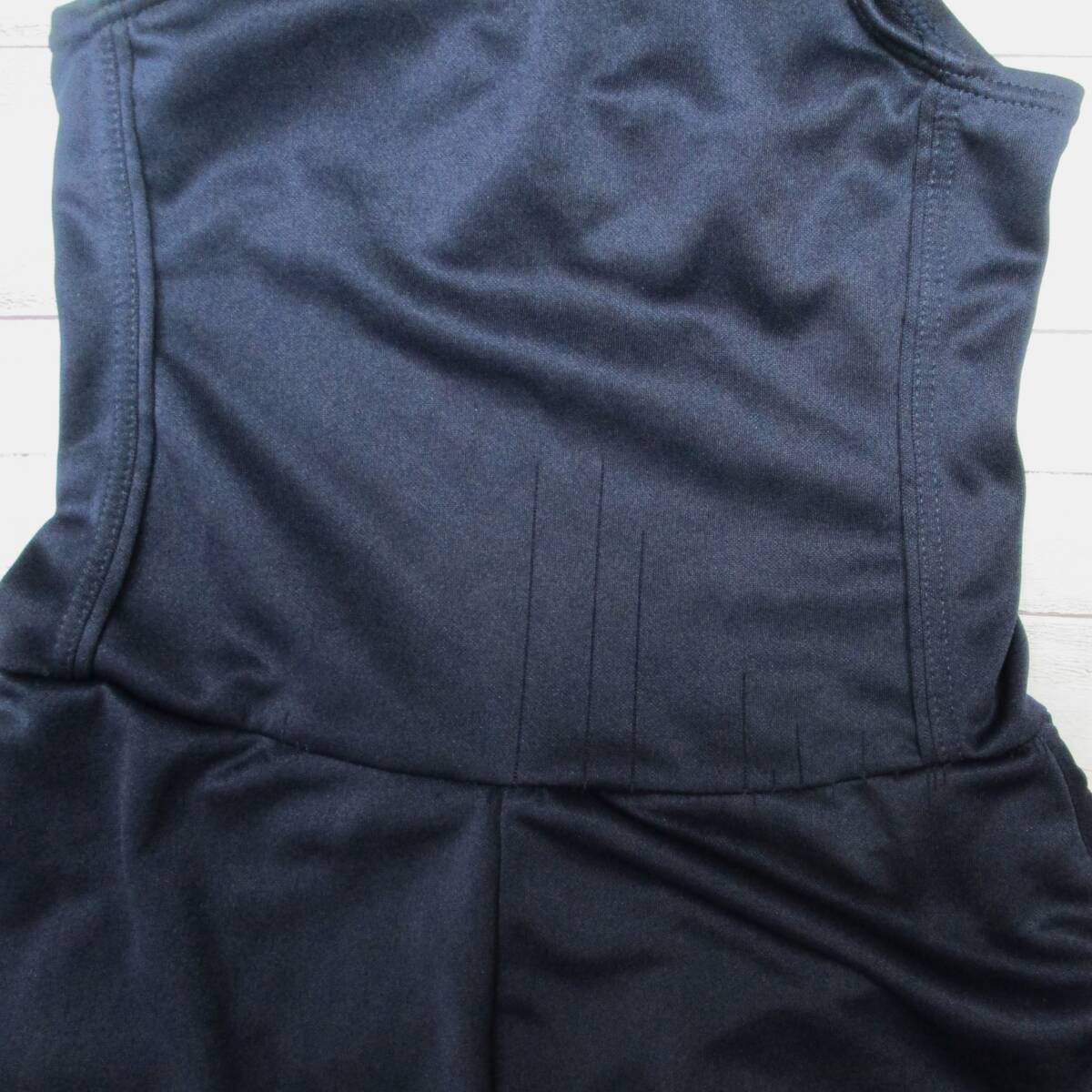E9544☆競泳水着 女子 130サイズ ジュニア ネイビー 紺黒系 ワンピース スカート 無地 水泳 スイム スイミング プール