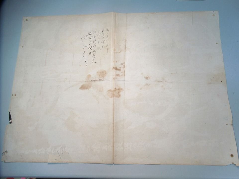 経年によるヤケシミがございます。折り目、シワ、鋲跡、破れ、汚れ劣化あり。丸めず梱包または折り跡あるものは折って発送いたします。