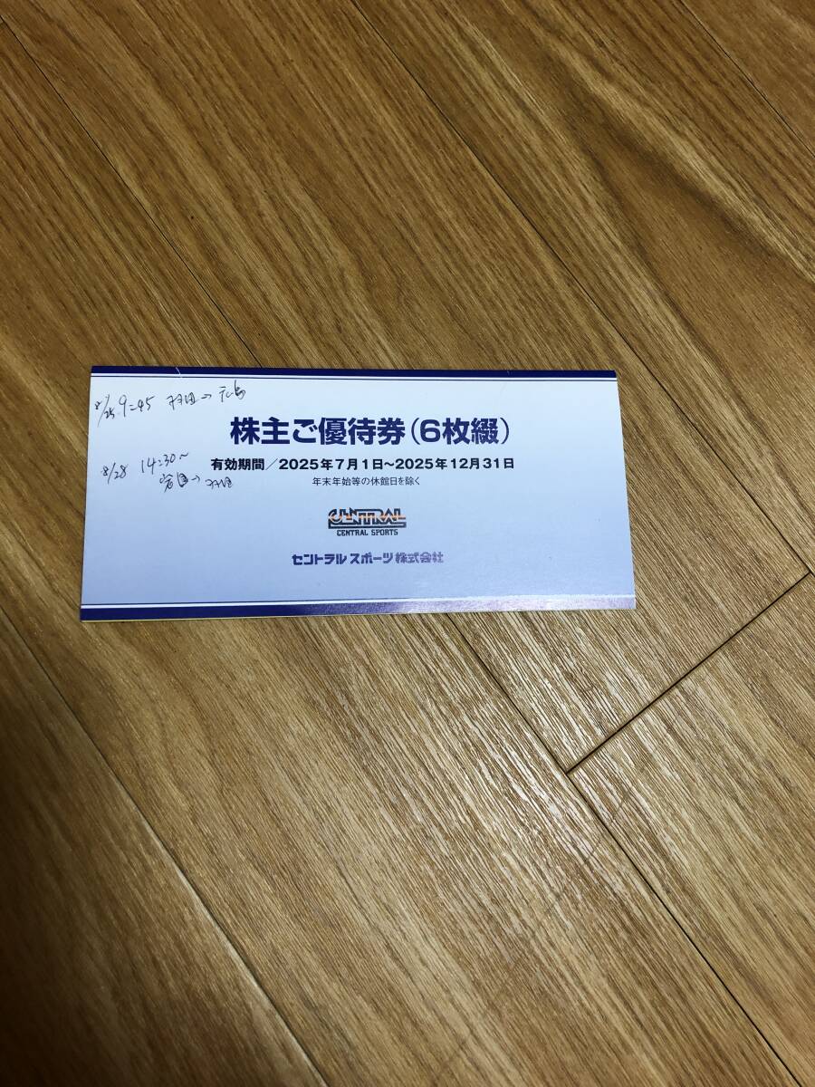 Product name: セントラルスポーツ株主優待券6枚セット 12月31日期限