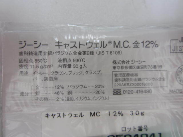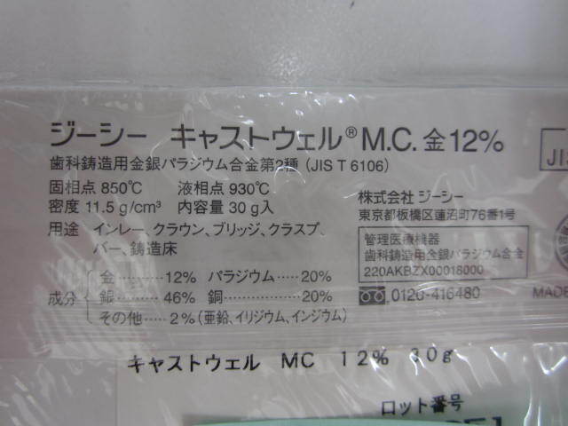 Product name: GC キャストウェル MC 金12% 30g×2 未開封品