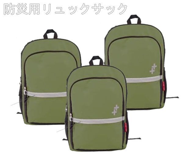 送料300円(税込)■oy229■防災用リュックサック カーキ 3点【シンオク】