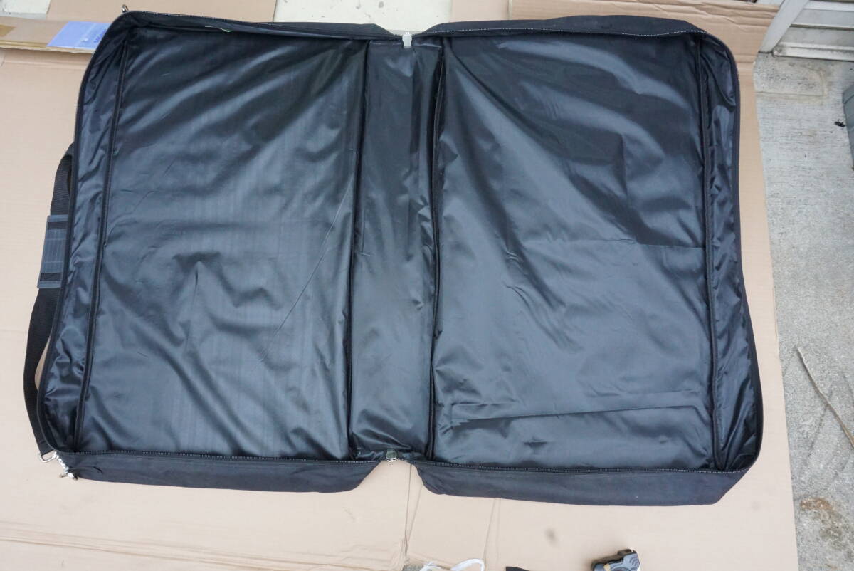 外箱や説明書はありません。マジックテープも、付属しているようですがありません。画像のキャリングバッグと本体のみとなります。