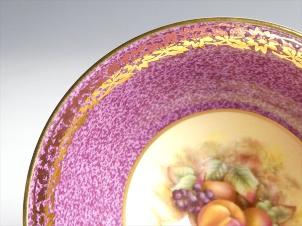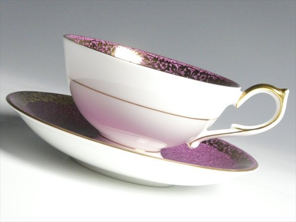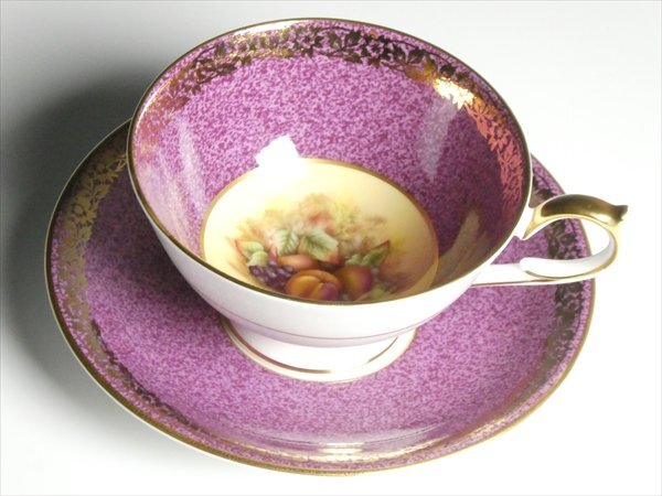 エインズレイ 最高級シリーズ オーチャードゴールド ④ 希少カラー パープル 金彩 フルーツ絵 ハイハンドル カップ&ソーサー n565