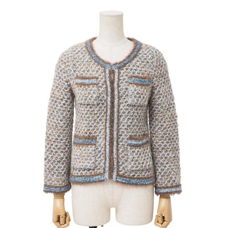 Product name: MI2117▼バーニーズニューヨーク*BARNEYS NEW YORK*ニット ノーカラージャケット カーディガン M相当 マルチカラー