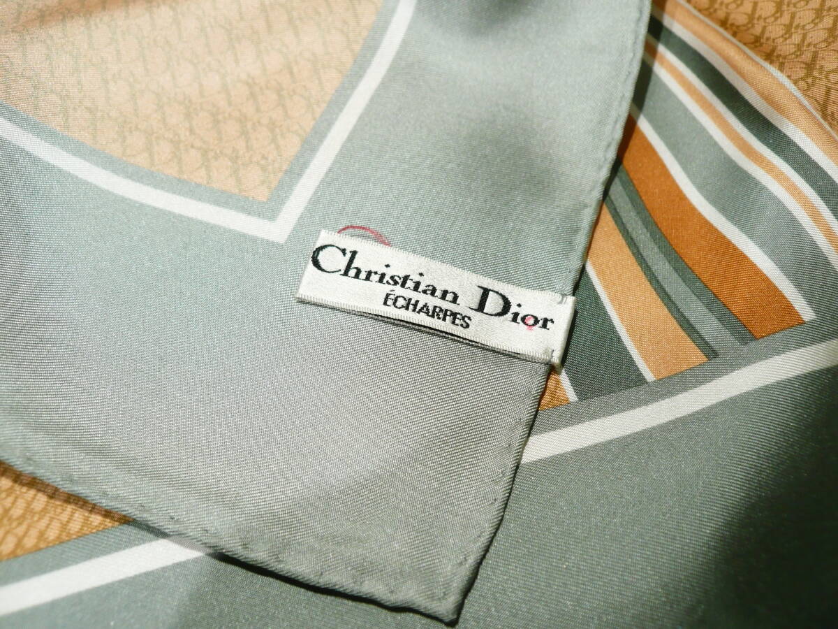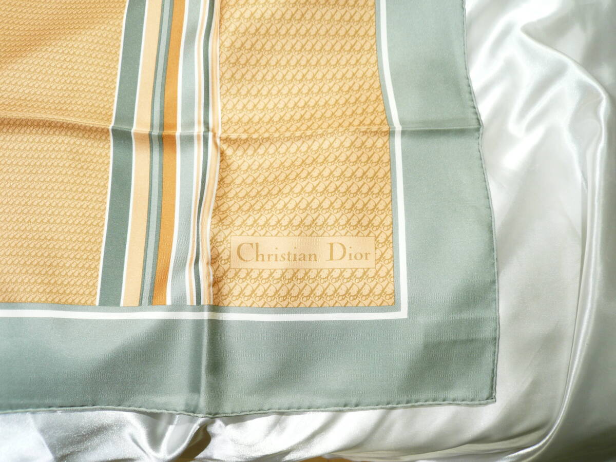 ☆Christian Dior クリスチャンディオール シルク スカーフ カネボウ 日本製 オレンジ×グリーン トロッター☆