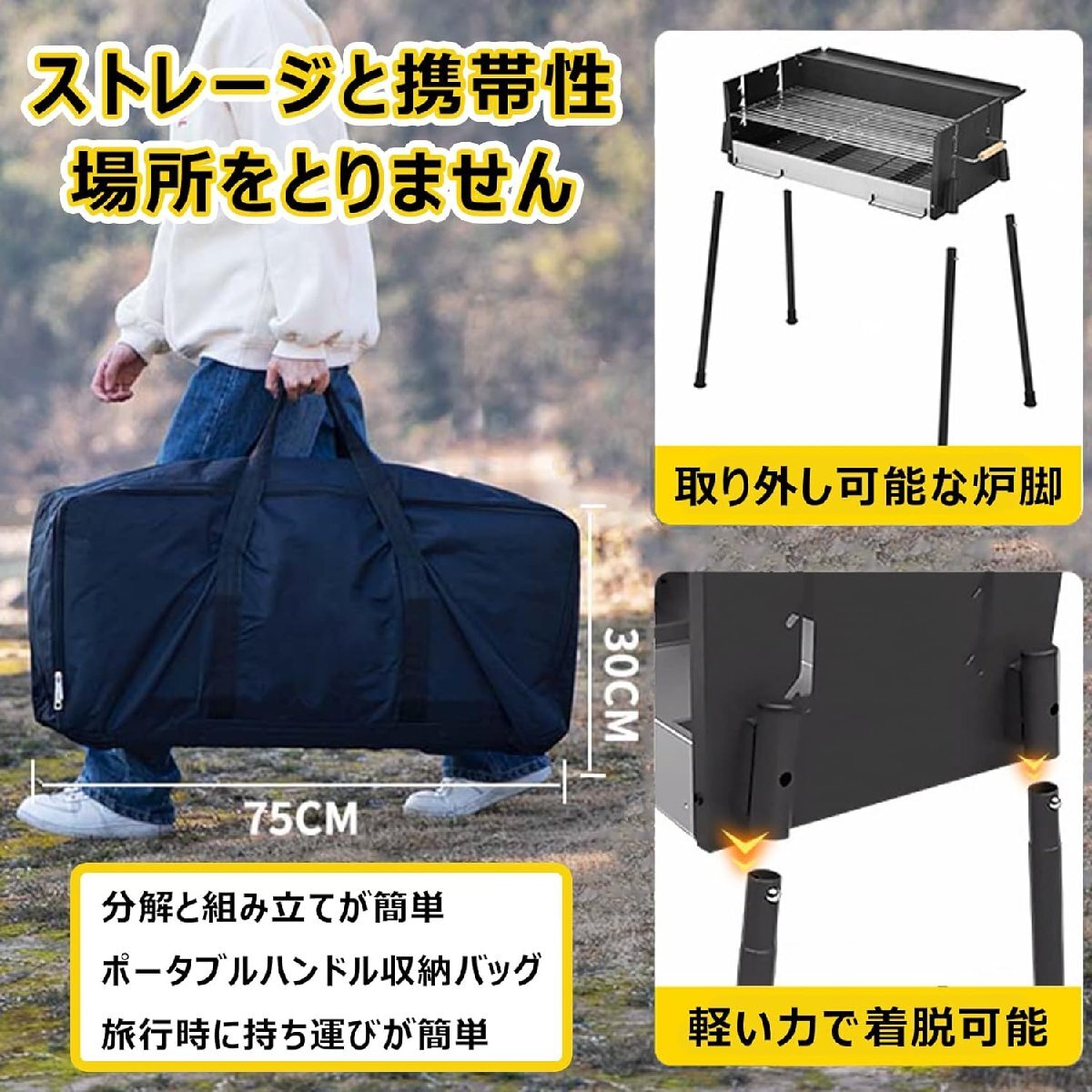 【大型bbq コンロ】アウトドアキャンプ、海辺、ご自宅の庭、屋上など様々なシチュエーションで、家族、友達と一緒にゆったり食事を楽しめ、気軽に本格な調理を楽しめるスタンダード式8-15人用大型ベーべキューコンロです。折りたたみ収納のサイズはわずか70*33*10cmで、収納袋も付いており、持ち運びが簡単です。
