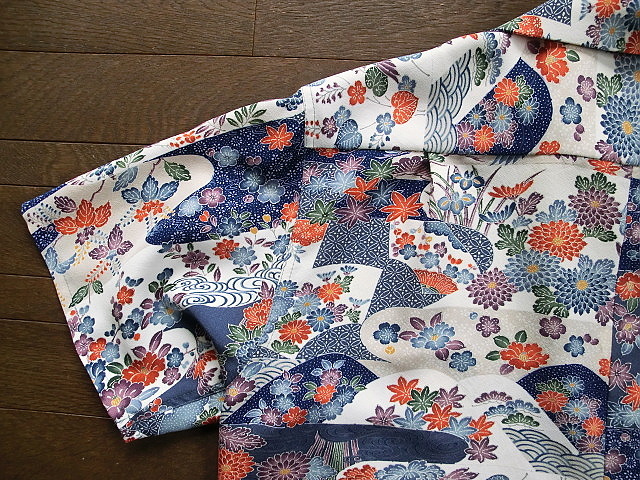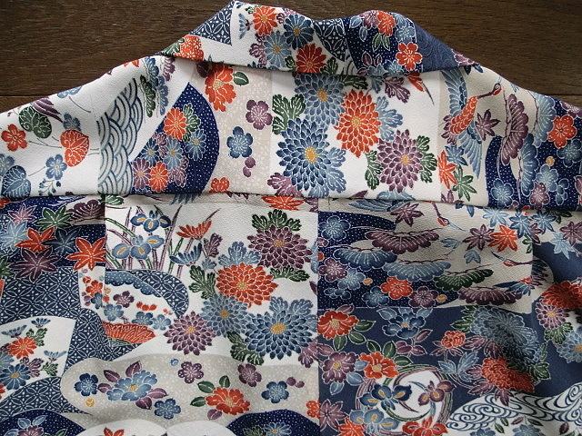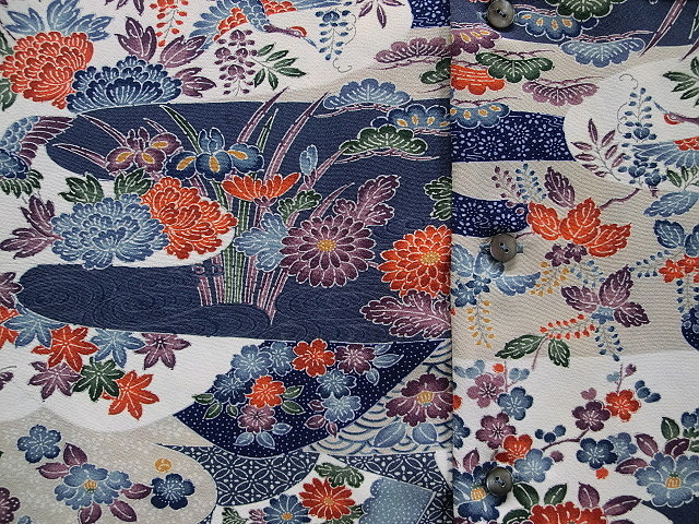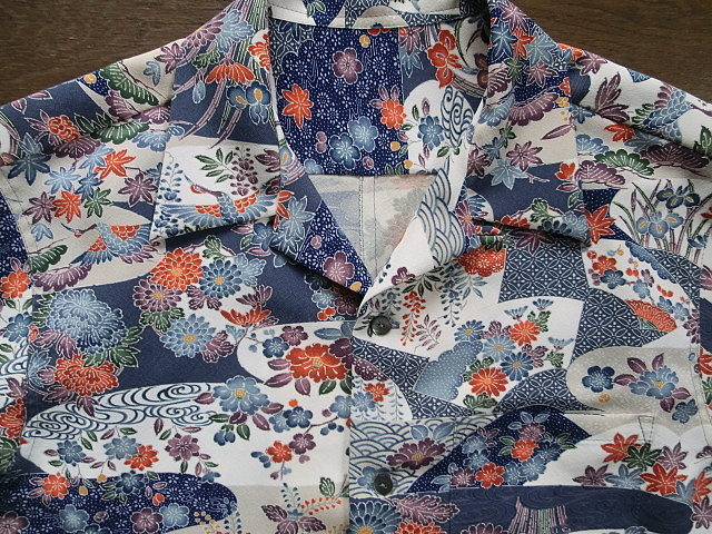 中古の着物をほどいて洗ってアロハシャツに仕立てています。