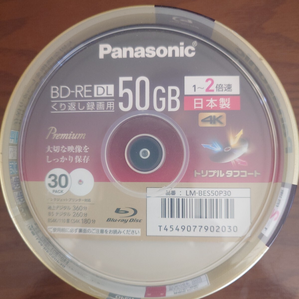 新品未開封 Panasonic BD-R DL 30枚スピンドルパック。LM-BES50P30 外装フィルム破れなし