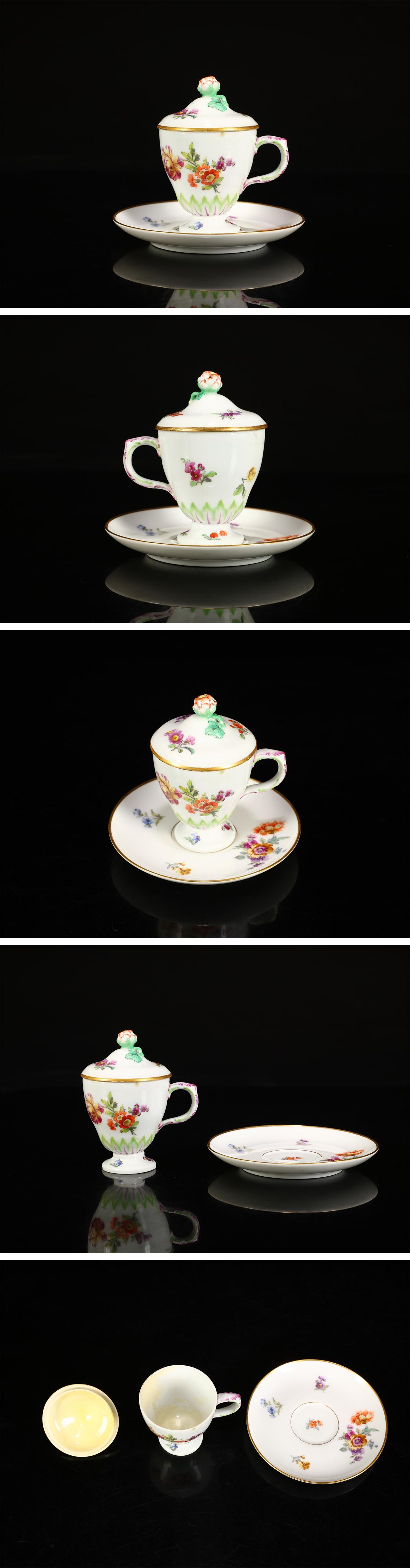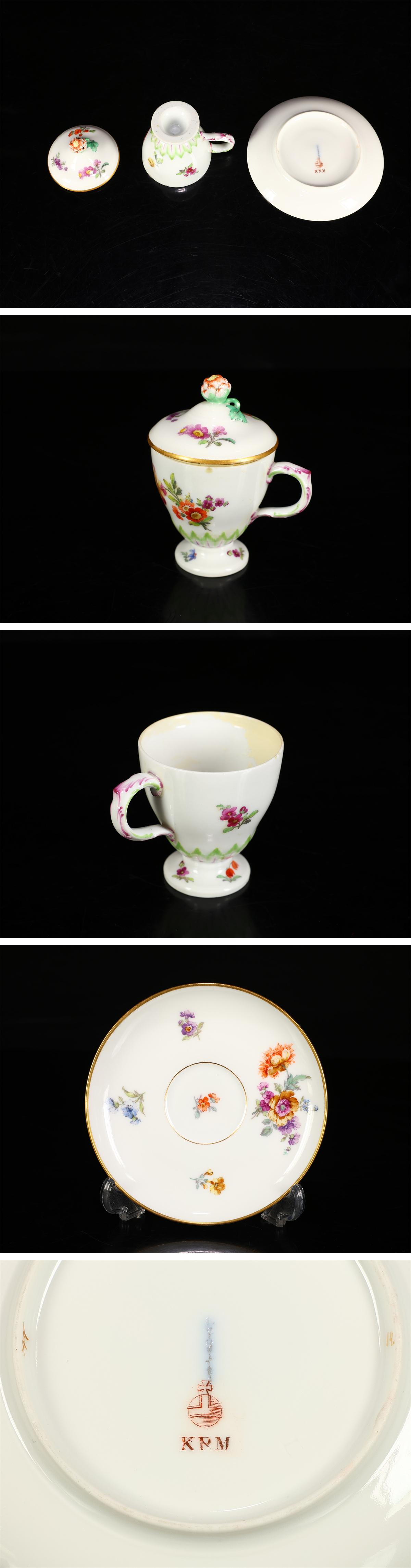 【吉】CN477 KPM 【ベルリン王立磁器製陶所】 1832年 十字オーブKPM銘 蓋付 カップ&ソーサー/修復品!