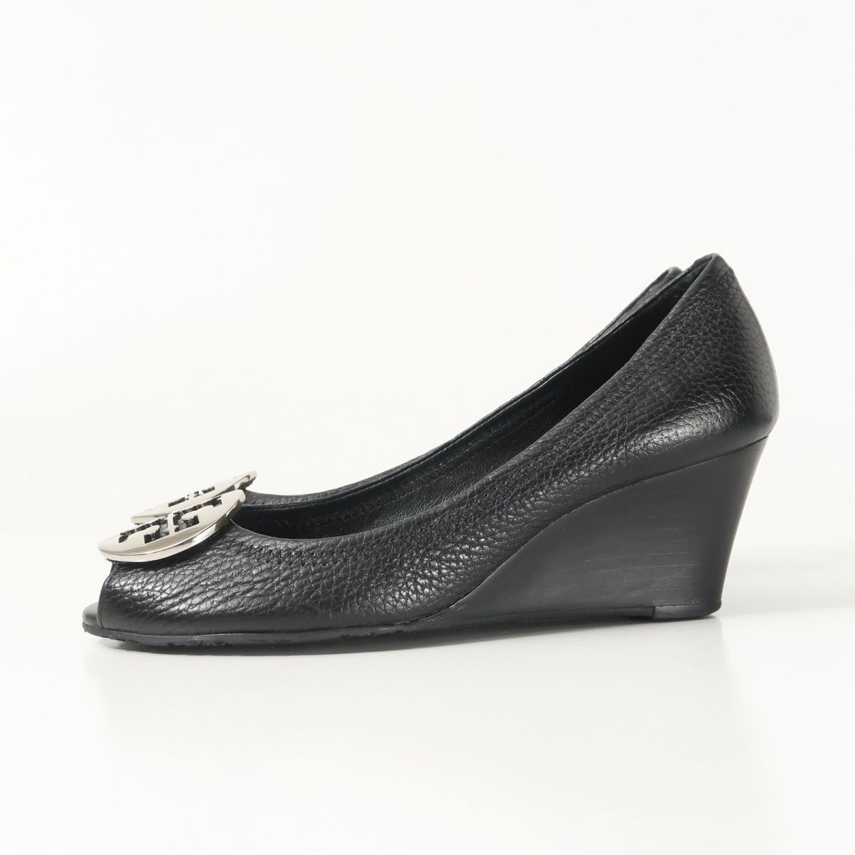 Product name: GS3838△トリーバーチ TORY BURCH レザー ウェッジソール オープントゥ ダブルTロゴ パンプス 靴*ブラック系*サイズ6.5M/23.5cm相当