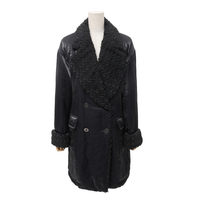 Product name: GR4875★Life GIVENCHY ジバンシィ 部分:ボア/フェイクファー ダブルブレスト 中綿入りコート ブラック サイズ9