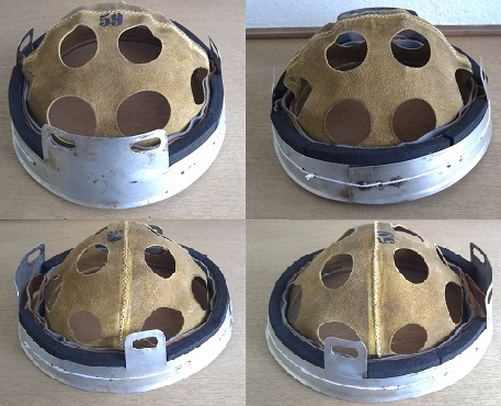 ※縫い直しの為、後頭部から顎にのびる革帯はハトメ穴ひとつ分 短くなっています。