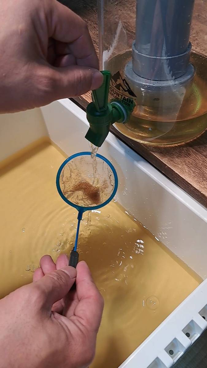 当方飼育場にて、タマミジンコ1g(約3000匹)を投入後、3日目検証時にこの量のタマミジンコが爆殖しておりました。画像ではわかりにくいですが、容器内には3日後リセット時に約3g(約9000匹)に爆増しておりました
