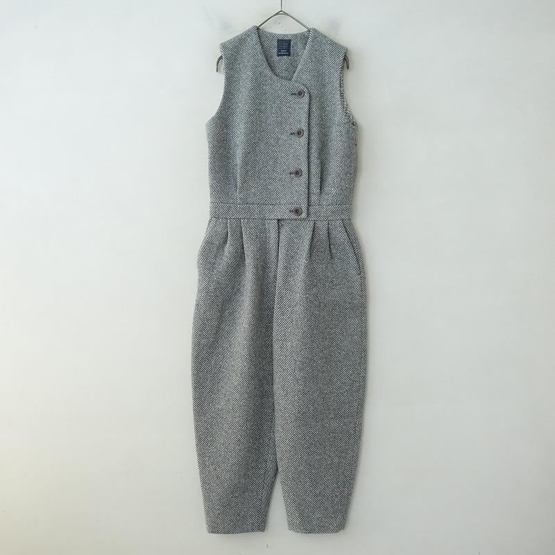 ミナペルホネン mina perhonen *esperer オールインワン*36毛カシミヤヘリンボーングレー×オフ白パンツ(k25-2510-73)【32J52】