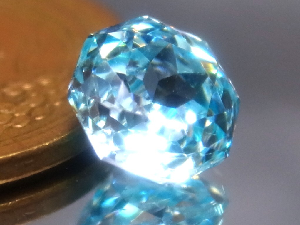 4.36ct 8㎜ 新品・新色・最先端技術のレーザー光線によるローズフラワー8角カット・ボジソーダブルーカラーキュービックジルコニア