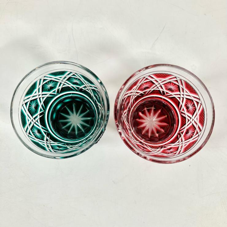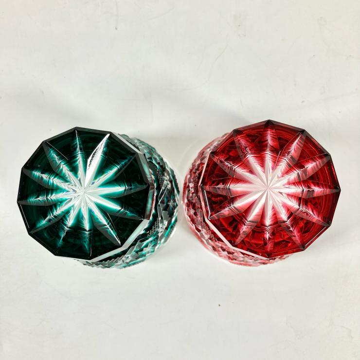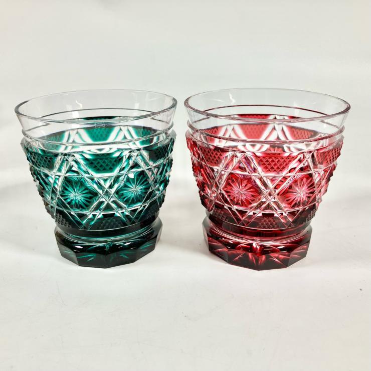 島津 薩摩桐切子 伝統工芸品 切子タンブラー揃 タンブラー グラス 薩摩ガラス工芸作 色被せガラス グラデーション 2点セット 現状品