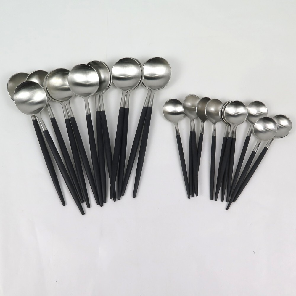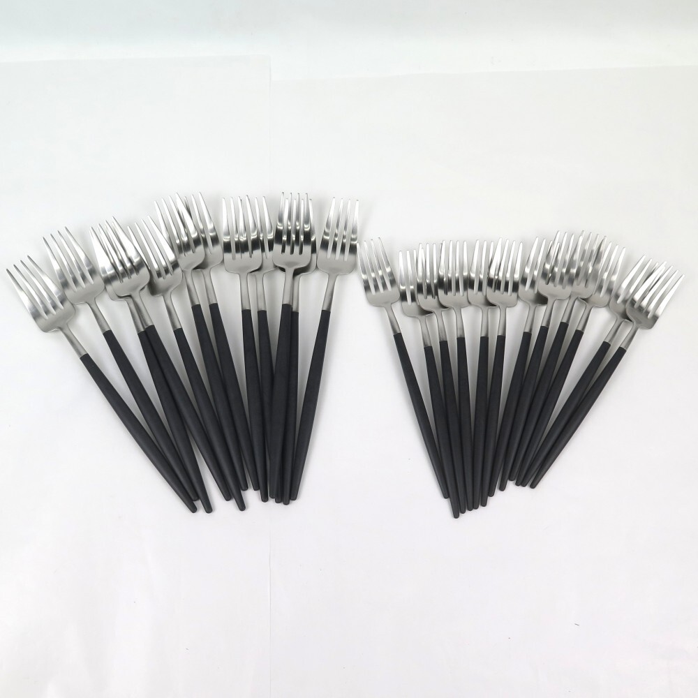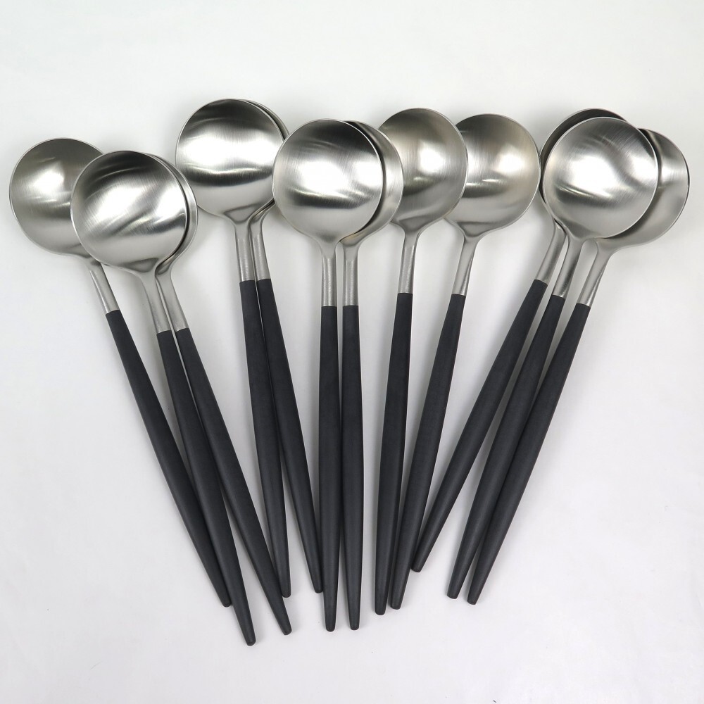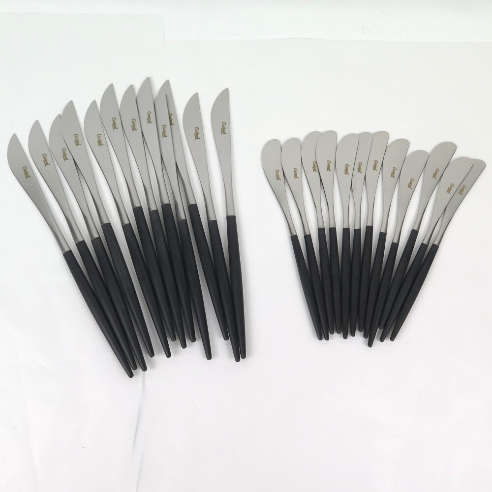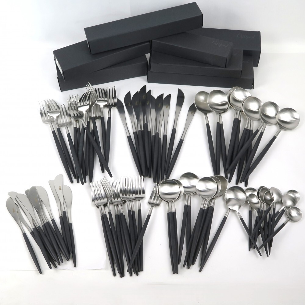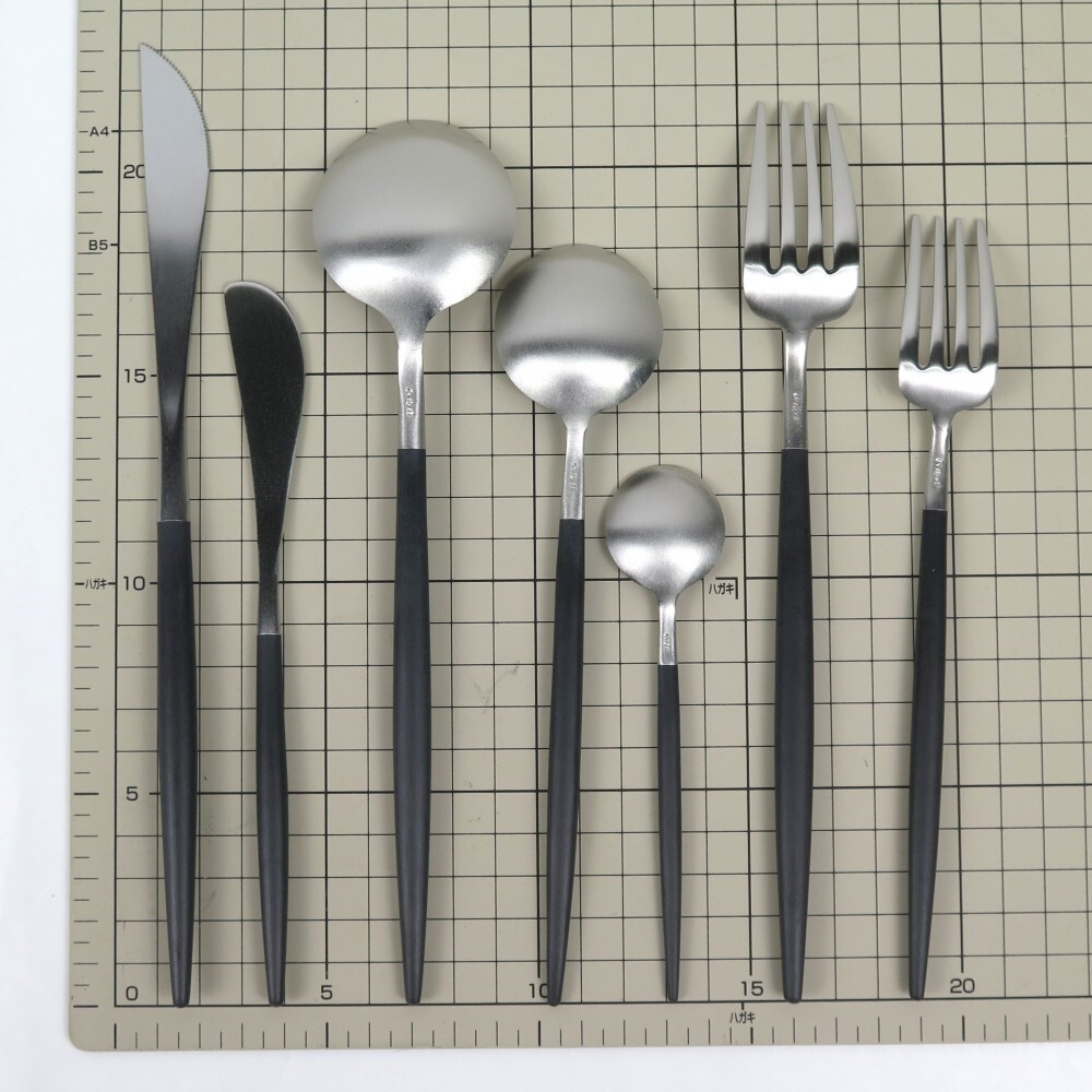 Product name: 1円〜 Cutipol クチポール GOA ゴア ブラックシルバー ナイフ/フォーク/スプーン 7種各12点 計84点 箱付 4244558