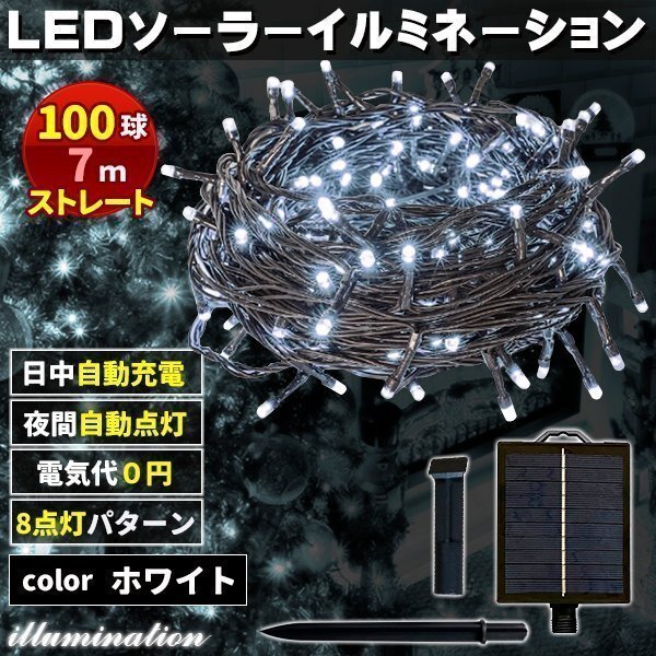 ソーラー イルミネーション 屋外 クリスマス ストレート 屋外用 イルミネーションライト 100球 ホワイト