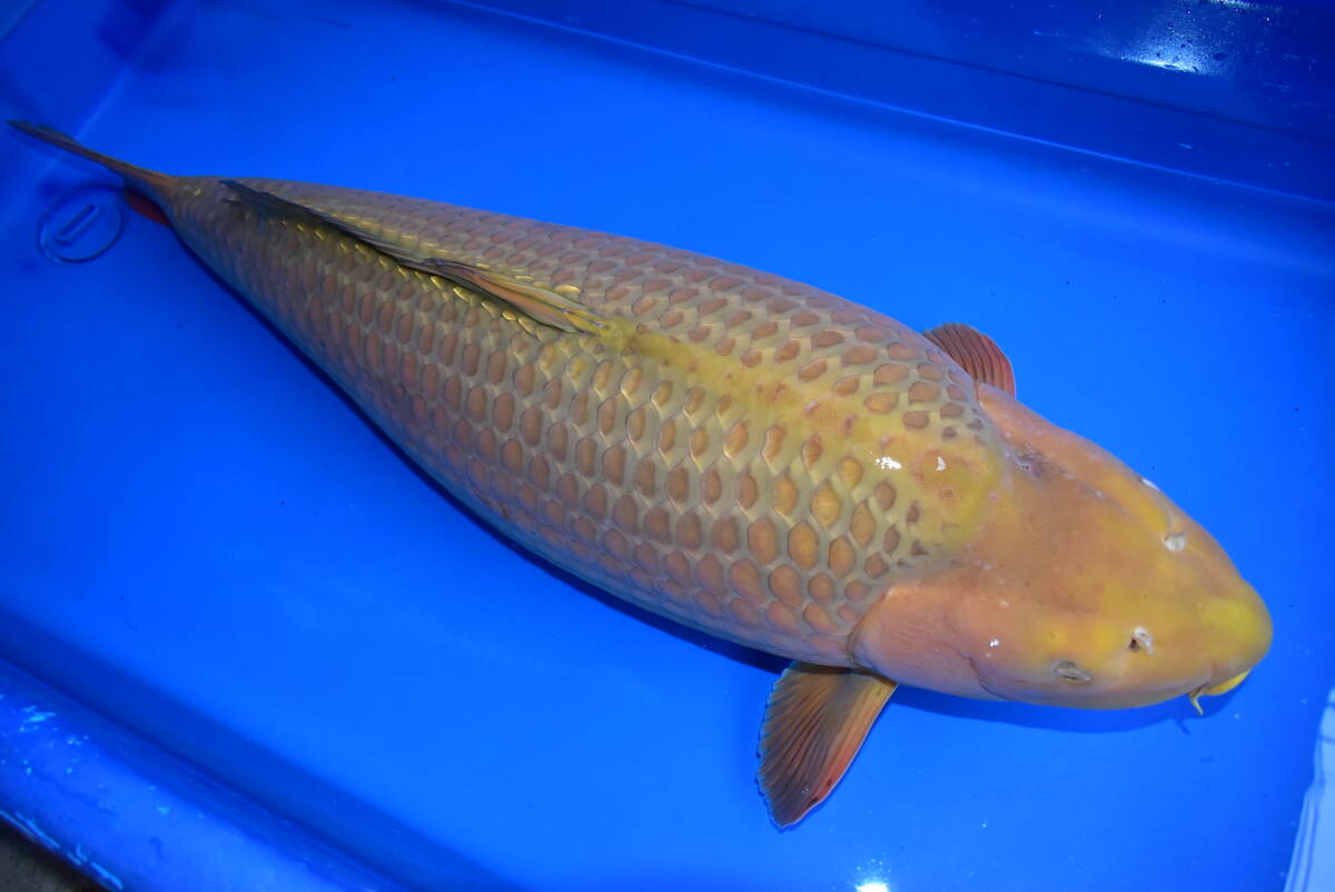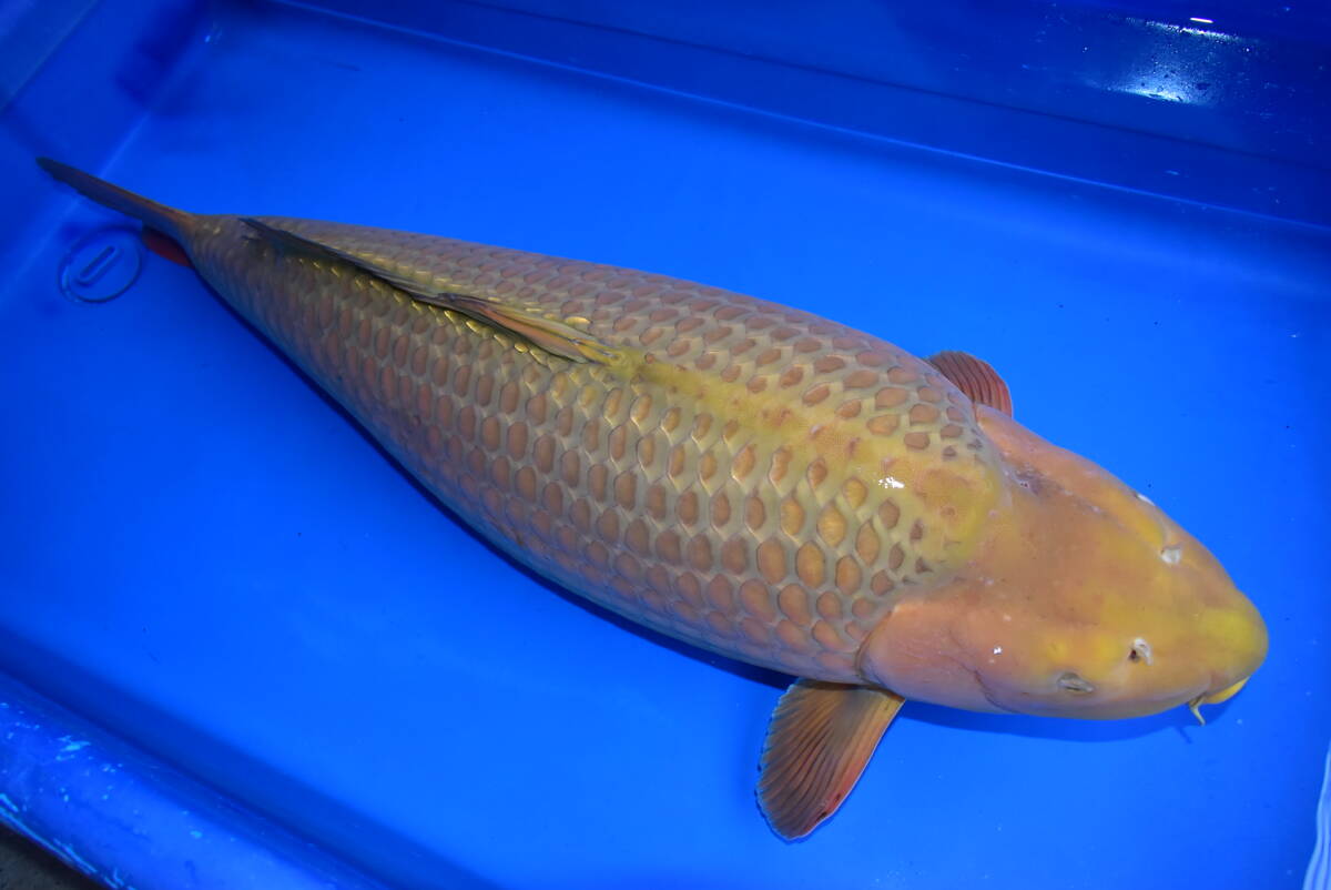 この鯉は、阪井養魚場産 茶鯉 5歳 (2021年産) 78cm メスです。