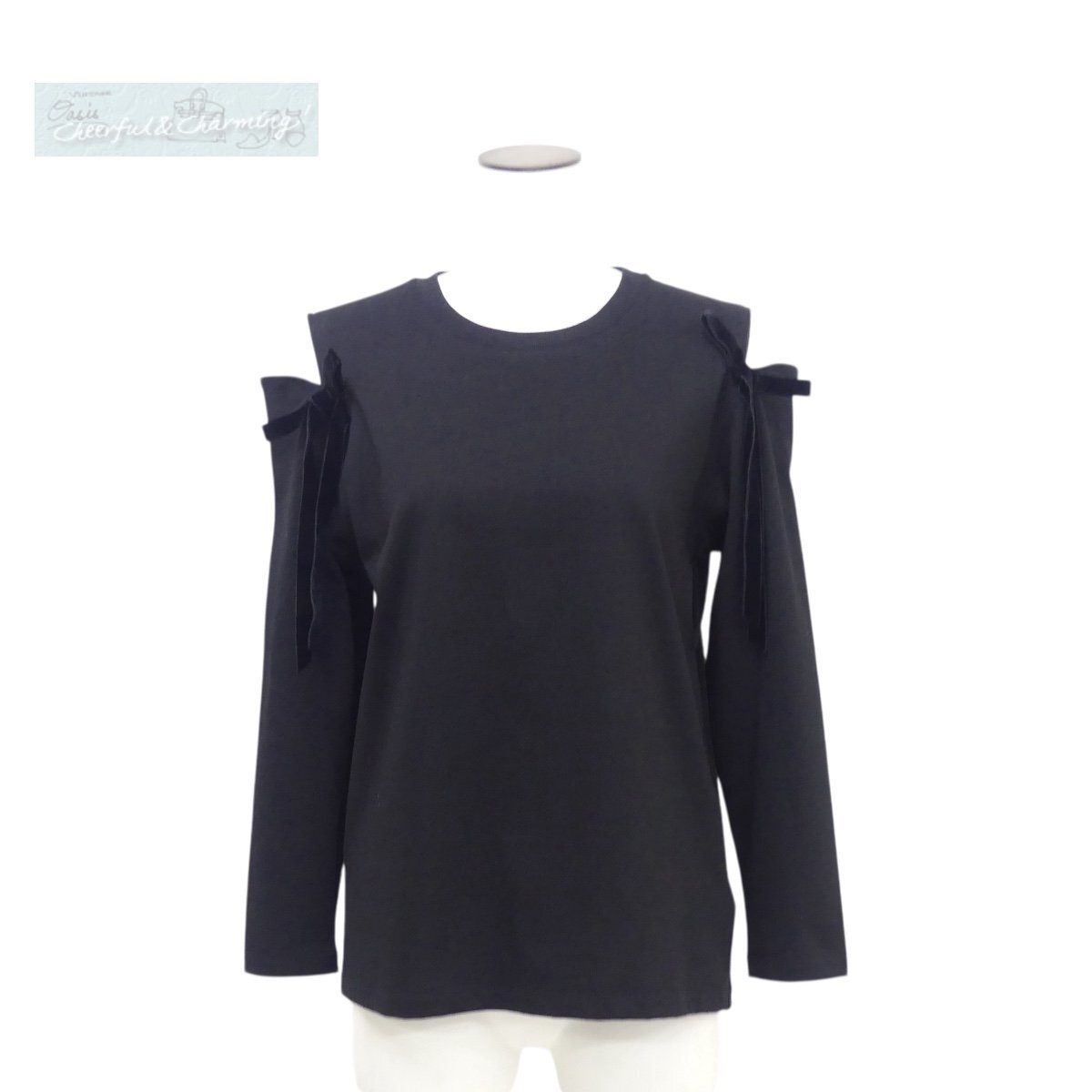 Product name: 新作 Kaon カオン ショルダーホールリボンカットソー F ブラック ベロアリボン ショルダーカットアウト コットン UNITED ARROWS購入 25AW