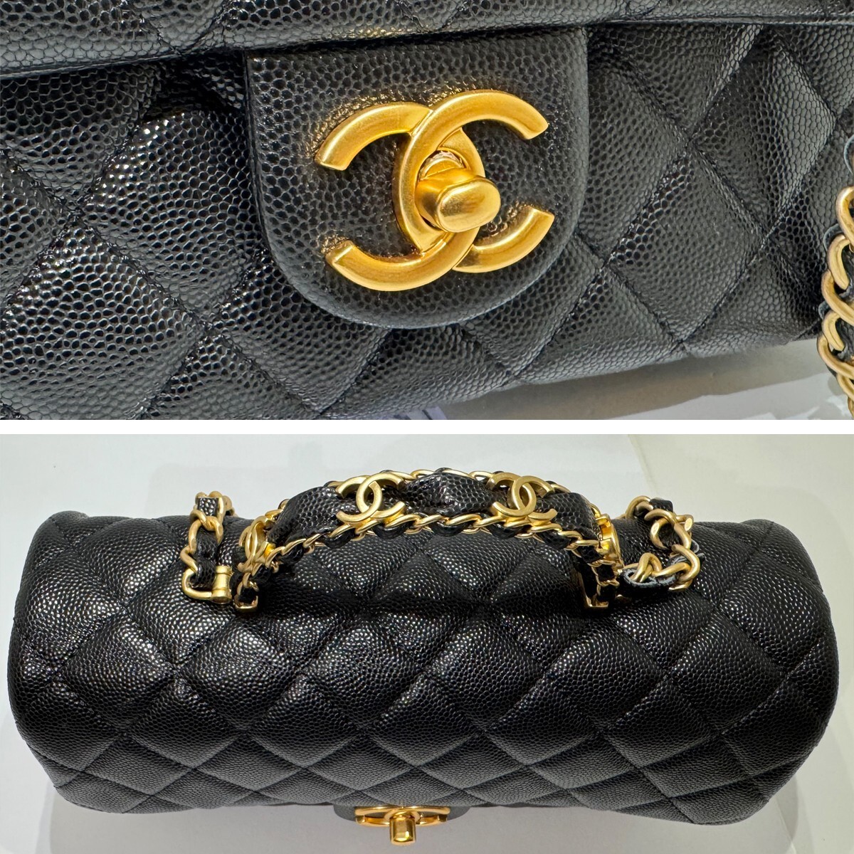 CHANEL シャネル スモール トップハンドル フラップ バッグ グレインド シャイニー カーフスキン ブラック AS5702