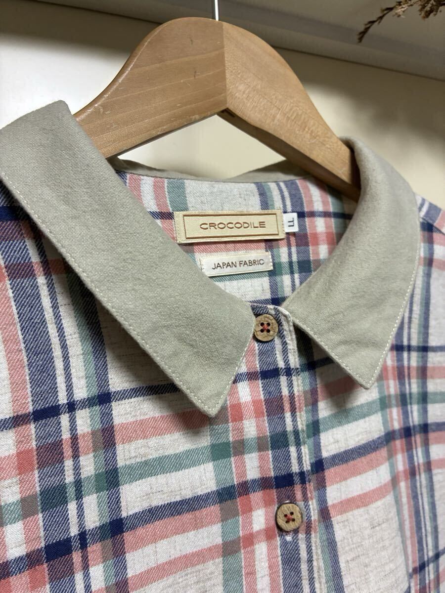 Product name: 【中古】★CROCODILE(クロコダイル)優しい色合いのチェック柄で裾辺りのクロコダイル刺繍がお洒落なチュニック丈ワンピース★サイズ/LL