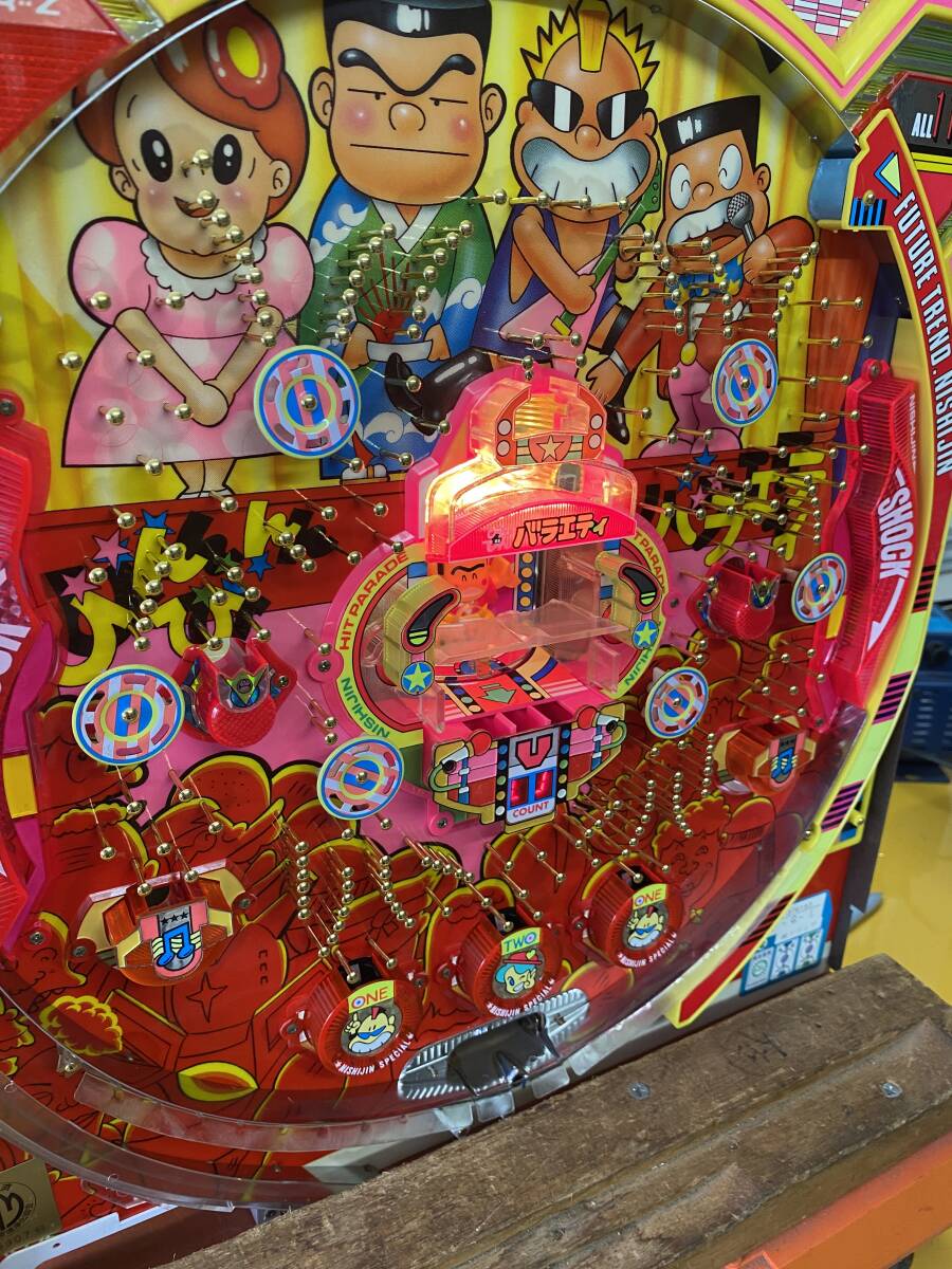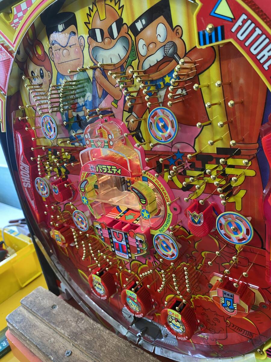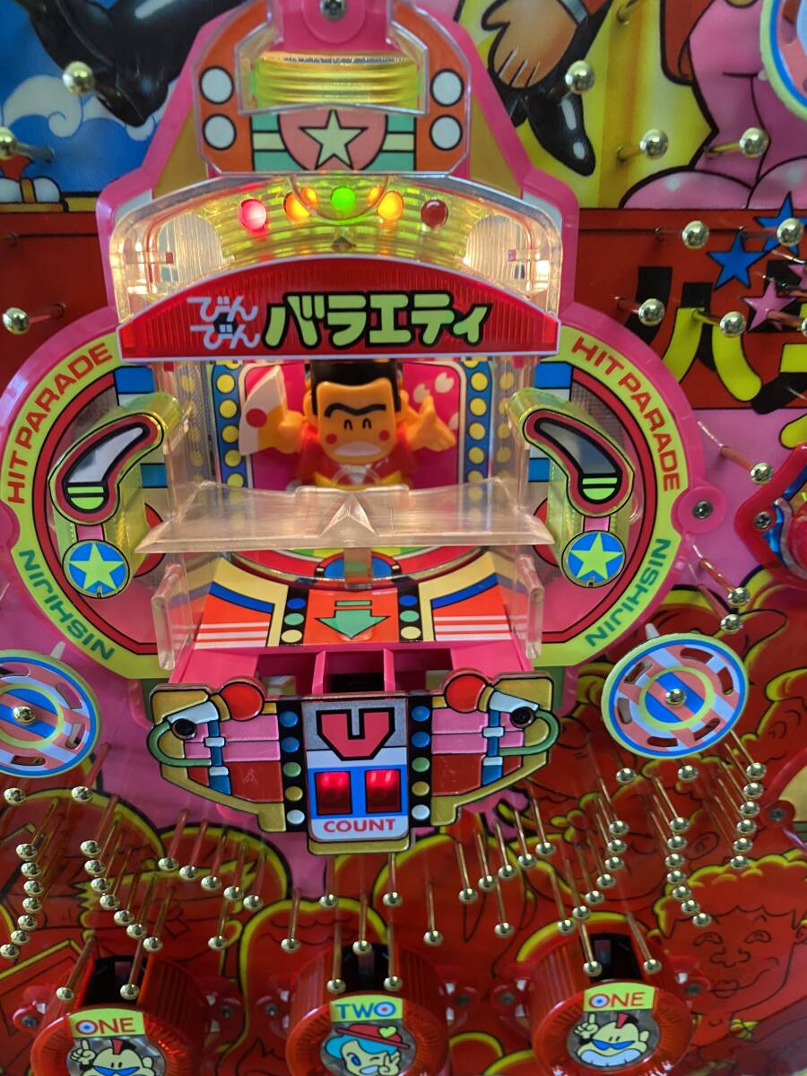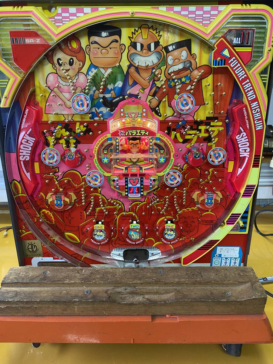 商品説明ご覧頂きありがとうございます。西陣の激レア羽根物のびんびんバラエティP-3の出品です。3面の役物が順番に出てきて違うゲーム性を体感できるお得な台です(^^)オークションでもなかなか見かけない台で、台のコンディションも抜群です。是非コレクションにどうぞ(^^)