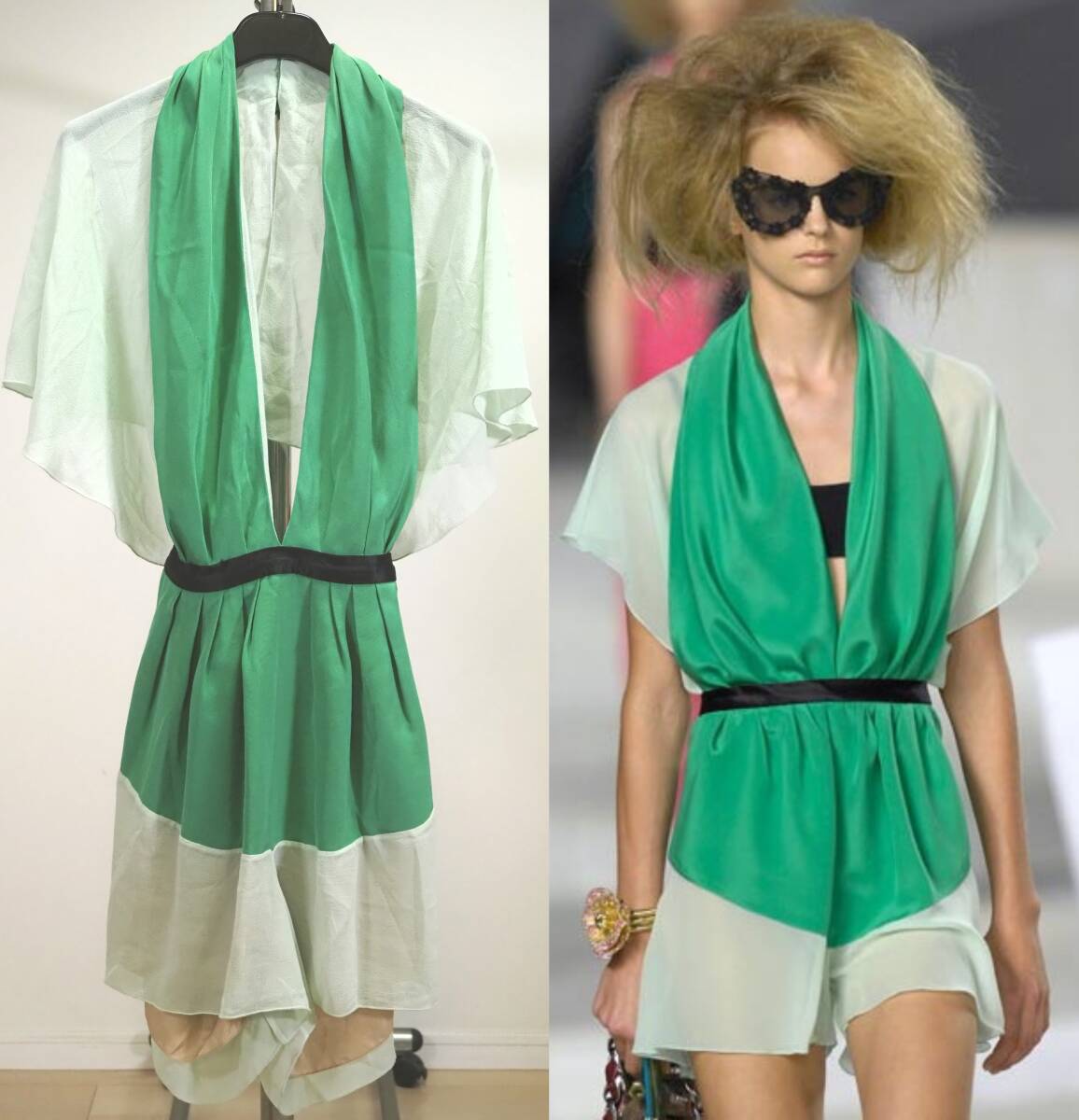 美品 MARC JACOBS マークジェイコブス 08SSシルクオールインワン0緑×白 USA製 ファーストライン